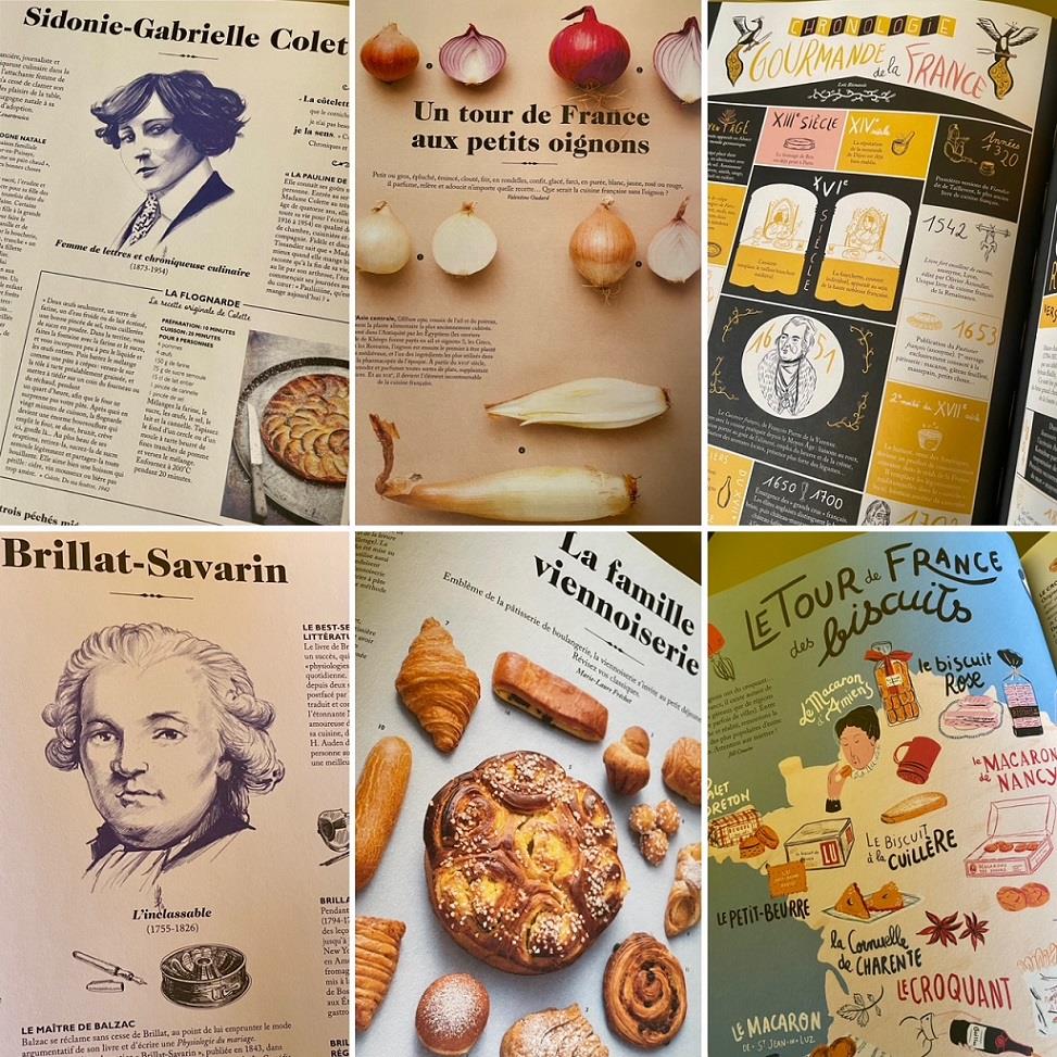 Όπως γράφει ο συγγραφέας στην εισαγωγή, ο οποίος χρειάστηκε πάνω από δύο χρόνια έρευνας, ατέλειωτων συνομιλιών και συνεντεύξεων με ανθρώπους δεκάδων ειδικοτήτων σχετικών με τη γαστρονομία (μάγειρες και ζαχαροπλάστες, οινοχόους, εστιάτορες, κριτικούς και δημοσιογράφους, ιστορικούς, φωτογράφους, σκιτσογράφους και γραφίστες, κ.λπ.), το αποτέλεσμα είναι ένα mille-feuille επίγειας και πνευματικής τροφής. Από την πουλάδα της Βρέστης στην αγελάδα της Νάντης, από τα Chablis της Βουργουνδίας στα Cabernet Sauvignon του Bordeaux κι από τα Riesling της Αλσατίας στη σαμπάνια της Καμπανίας, από το βούτυρο της Νορμανδίας στα στρείδια της Βρετάνης κι από εκεί στα κάστανα της Ardèche, περνώντας από το foie gras του Périgord στο σαλάμι rosette της Lyon, από το brie του Melun στο camembert της Νορμανδίας κι από το cantal της Ωβέρνης στο reblochon των Άλπεων, από τη μπουγιαμπέσα της Μασσαλίας στη choucroute της Αλσατίας, από το poire Belle-Hélène του Auguste Escoffier στον πιο διάσημο στον κόσμο πουρέ πατάτας του Joël Robuchon, από το fraisier του Gaston Lenôtre στο στρείδι με καφέ (huître au café) της Anne-Sophie Pic, από τη γλώσσα του Rabelais σε αυτήν του Victor Hugo κι από εκεί στην Colette, οι 431 σελίδες του βιβλίου με τα διόλου ευκαταφρόνητα 3 κιλά του, ξεφυλλίζονται και διαβάζονται από μπρος-πίσω κι από πίσω-μπρος, οριζοντίως, καθέτως και διαγωνίως, ακόμα κι αν η γαλλική γλώσσα δεν είναι το φόρτε σας.