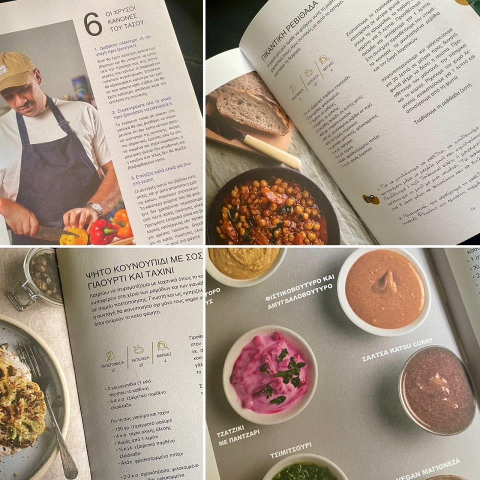 Οι 83 συνταγές του Τάσου, για τον οποίο το καλό φαγητό σημαίνει καλή διάθεση και καλή ζωή, είναι νόστιμες, υγιεινές και ισορροπημένες αλλά όχι ξερά διαιτητικές, έχουν χρώματα κι αρώματα. Είναι επεξηγηματικές αλλά όχι εξαντλητικές σε λεπτομέρειες και απλές στην εκτέλεση, τόσο, που το καθημερινό φαγητό γίνεται διασκεδαστικό παιχνίδι που μπορεί να μαγειρέψει κι ένας έφηβος (σκέφτομαι τον δεκαπεντάχρονο ανιψιό μου που έχει ξεκινήσει να μαγειρεύει εδώ και δυο χρόνια με πάθος και την δεκατριάχρονη αδελφή του που τον ακολουθεί κατά πόδας) και να καλέσει τους γονείς του σε λουκούλλειο γεύμα.