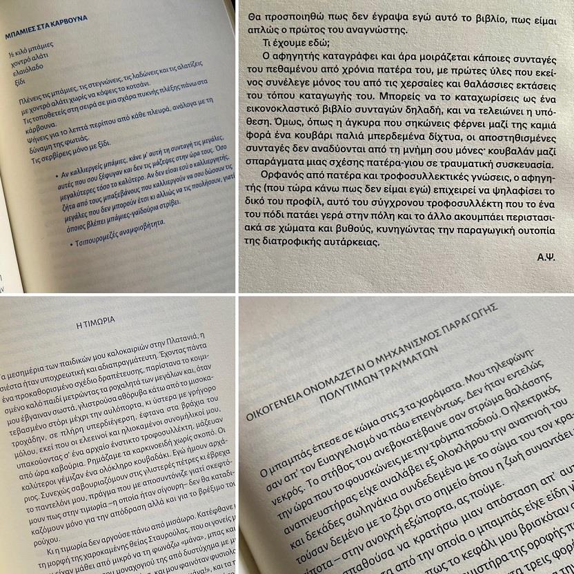Αυτό είναι και το μοναδικό βιβλίο αμιγώς συνταγών που διάβασα το 2024. Ο Τάσος Αντωνίου, γνωστός και αγαπητός από το blog Mamapeinao.gr, μαγειρεύει κάπως όπως μαγειρεύω κι εγώ. Αγαπάμε και οι δύο όλες τις κουζίνες του κόσμου αλλά δεν παραμελούμε την ελληνική, δίνουμε προσοχή στα υλικά, στην ποιότητα και την εποχικότητά τους και είμαστε σε συνεχή αναζήτηση της χαράς και της έκπληξης που μπορεί να μας χαρίσει ένα πιάτο καλομαγειρεμένου φαγητού.