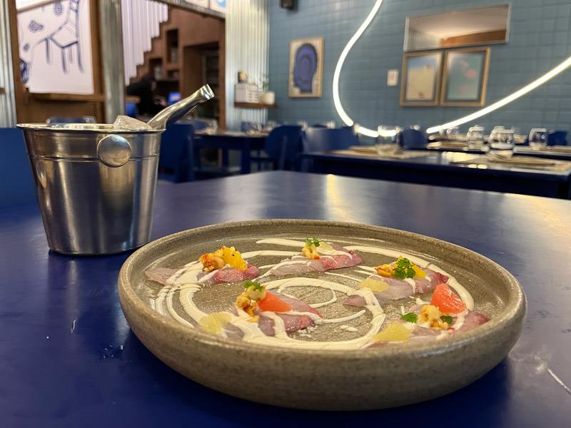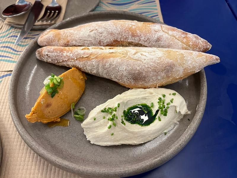 Ξεκινάμε με σπουδαία, χειροποίητη μπαγκέτα (7€) η οποία έρχεται ζεστή ζεστή, παρέα με μια φανταστική μους ταραμά και βούτυρο γαρίδας, και συνεχίζουμε με ωραιότατο σεβίτσε (14€) με ψάρι ημέρας, μανταρίνι, κόλιανδρο, σίσο, κρεμμύδι εσαλότ, γλυκοπατάτα, τσίλι και κόκκινο κρεμμύδι τηγανητό. Το ψάρι ημέρας που πετύχαμε εμείς ήταν μαγιάτικο, το οποίο θα αναδεικνυόταν καλύτερα με λίγο λιγότερο εσαλότ, και πάλι όμως το αποτέλεσμα ήταν άκρως ικανοποιητικό.