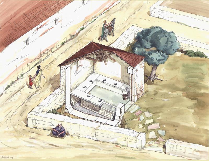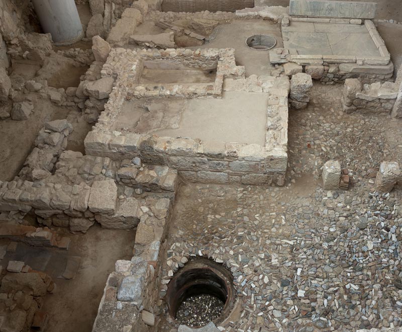 Κι είναι ζήτημα χρόνου από τη στιγμή που τα σπίτια αποκτούν νερό, μέχρι οι επαύλεις των πλουσίων να αποκτήσουν ιδιωτικά λουτρά, τα οποία θα γίνουν χώροι συναντήσεων, σαν άλλα σπα της εποχής. Ένα από αυτά, το δυτικό λουτρό, είναι ένα από τα δημοφιλέστερα κτίσματα της ανασκαφής. Δεν μακροημέρευσε, υπήρξε για έναν μόνο αιώνα, από τον 2ο μ.Χ. μέχρι τον 3ο που καταστράφηκε, μας λέει όμως πολλά για τα ήθη και τα έθιμα της εποχής, για την επιδαπέδια θέρμανση αιώνες πριν γίνει κουλ, για το πόσο μοιάζει ο τρόπος λειτουργίας του με τα χαμάμ της οθωμανικής αυτοκρατορίας (έχει αποδυτήριο, ψυχρό διαμέρισμα, χλιαρή αίθουσα για την προσαρμογή του σώματος και θερμή, για ατμόλουτρα και ζεστά μπάνια στον λουτήρα) και για τον τρόπο που το χρησιμοποιούν άνδρες και γυναίκες σε διαφορετικές μέρες και ώρες λειτουργίας.