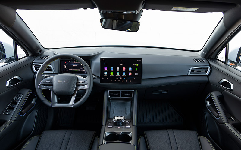 Όλες οι εκδόσεις διαθέτουν ψηφιακό πίνακα οργάνων 8,8 ιντσών, ενώ υπάρχει δυνατότητα επιλογής για το μέγεθος της οθόνης του συστήματος infotainment - 10,1 ίντσες στην έκδοση Active και 12,8 ίντσες στην έκδοση Boost. Ανεξάρτητα από την οθόνη, το ενσωματωμένο λογισμικό της BYD προσφέρει υποστήριξη για εφαρμογές όπως το Spotify, το YouTube, το Zoom και το Amazon Music. Επιπλέον, μπορεί να αναβαθμίζεται μέσω ασύρματων ενημερώσεων λογισμικού (OTA).