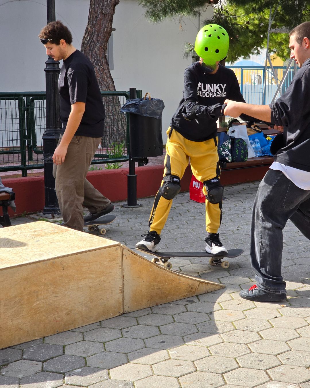 Ράμπες; Τσεκ. Skateboards; Τσεκ. Έμπειρο εκπαιδευτικό προσωπικό που σου μάθαινε skate; Τσεκ. Καθώς και φαγητό, αναψυκτικά και πολλή μουσική και καλή διάθεση.