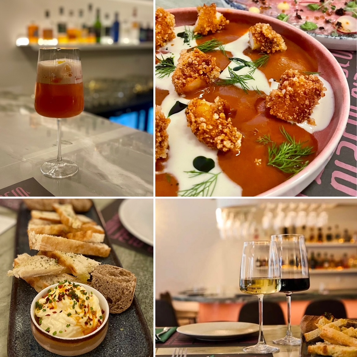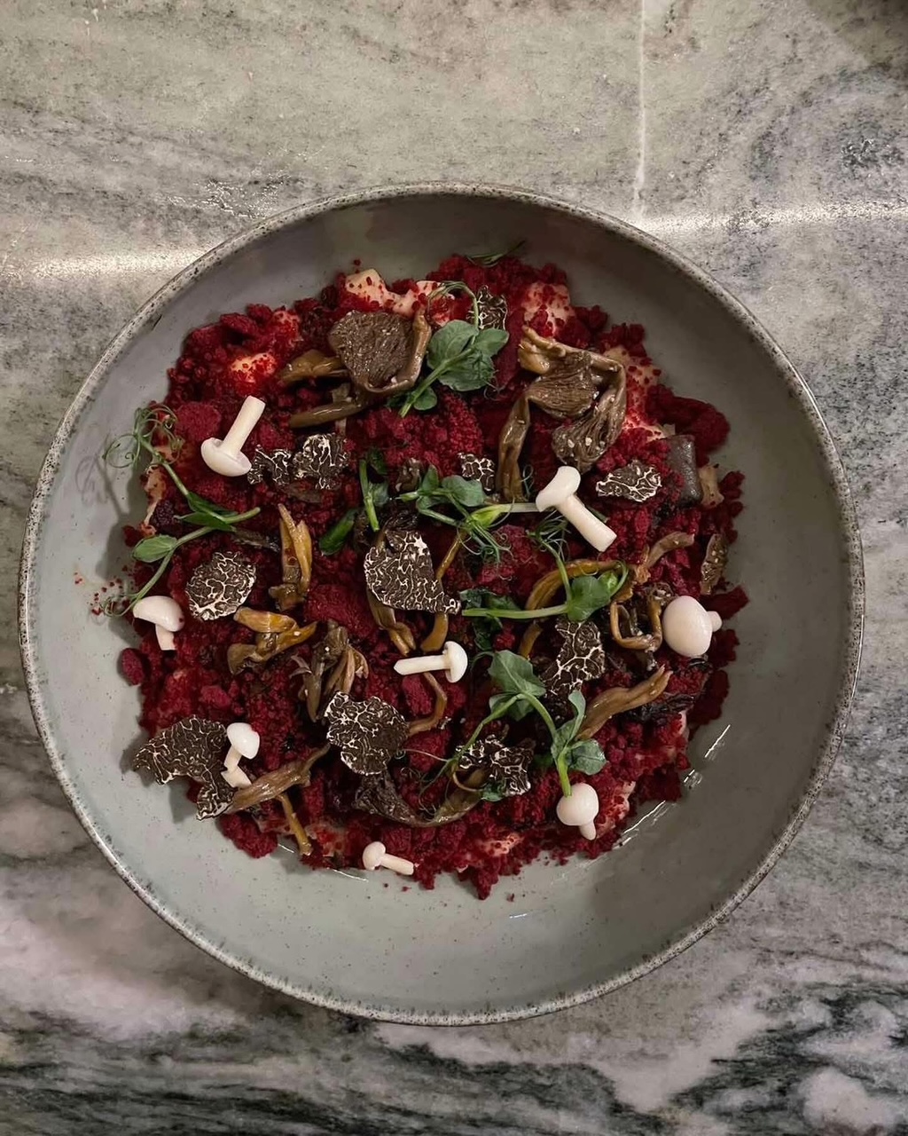 Οι δύο φίλοι και συνεργάτες ξέρουν να παίζουν το παιχνίδι της έκπληξης με δημιουργικότητα χωρίς εξαλλοσύνες και με αντιθέσεις υλικών και υφών που, με έναν μαγικό τρόπο, ενώνονται σε απόλυτα ταιριαστές γευστικές συνθέσεις. Είναι η κρέμα της ρόκας της οποίας η χαρακτηριστική ελαφριά πικράδα συμπληρώνει το άρωμα της κρέμας της ώριμης γραβιέρας, ενώ τα δύο αυτά στοιχεία ντύνουν το τέλεια λεπτοκομμένο μοσχαρίσιο καρπάτσιο. Είναι η τραγανή υφή και η άκρως μερακλίδικη νοστιμιά της πέτσας του χοιρινού που τυλίγει τις γαρίδες σε ένα σαγανάκι αλλιώτικο από τ’ άλλα. Είναι η νοστιμιά της χειμωνιάτικης γης που συνδυάζει το βελούδο και τη γλύκα της σελινόριζας και της πατάτας με τα έντονα αρώματα από μανιτάρια portobello, τρομπέτα και φρέσκια τρούφα, το άλικο χρώμα και το έξτρα γήινο άρωμα του παντζαριού με την όξινη νοστιμιά των ελαφρώς πικλαρισμένων μανιταριών enoki. Είναι η μεταξωτή υφή των tortellini γεμισμένων με γαρίδα, σπανάκι και guanciale, η εξωτική μυρωδιά της καρύδας και η θαλασσινή ευωδιά του χαβιαριού, σε ένα πιάτο που δύσκολα βλέπω να αλλάζει, μιας και μαθαίνω ότι είναι αυτό που έχει προλάβει να γίνει το πιο αγαπημένο.