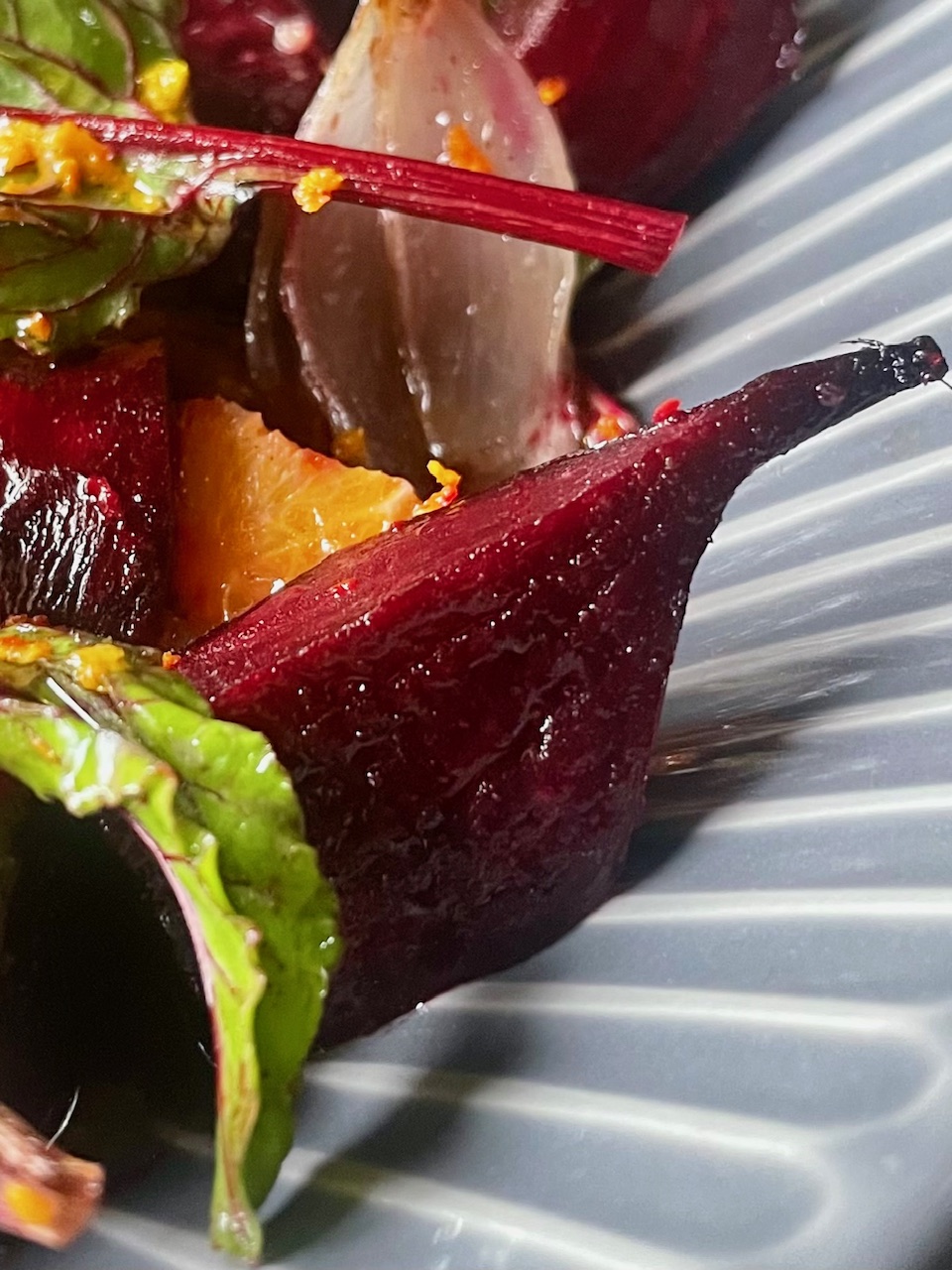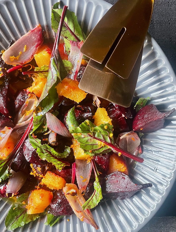 ΣΑΛΑΤΑ ΜΕ ΨΗΤΑ ΠΑΝΤΖΑΡΙΑ, ΨΗΤΑ ΚΡΕΜΜΥΔΙΑ & DRESSING ΠΟΡΤΟΚΑΛΙΟΥ