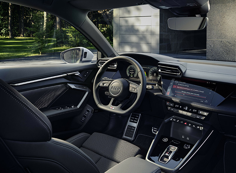 Οι σχεδιαστικές λεπτομέρειες και τα υψηλής ποιότητας υλικά χαρακτηρίζουν το εσωτερικό των ανανεωμένων Audi Α3 TFSI e. Τα αναδιπλούμενα πίσω καθίσματα εξασφαλίζουν ευελιξία για καθημερινή χρήση με τον χώρο αποσκευών να αυξάνεται από τα 280 στα 1.100 λίτρα.
