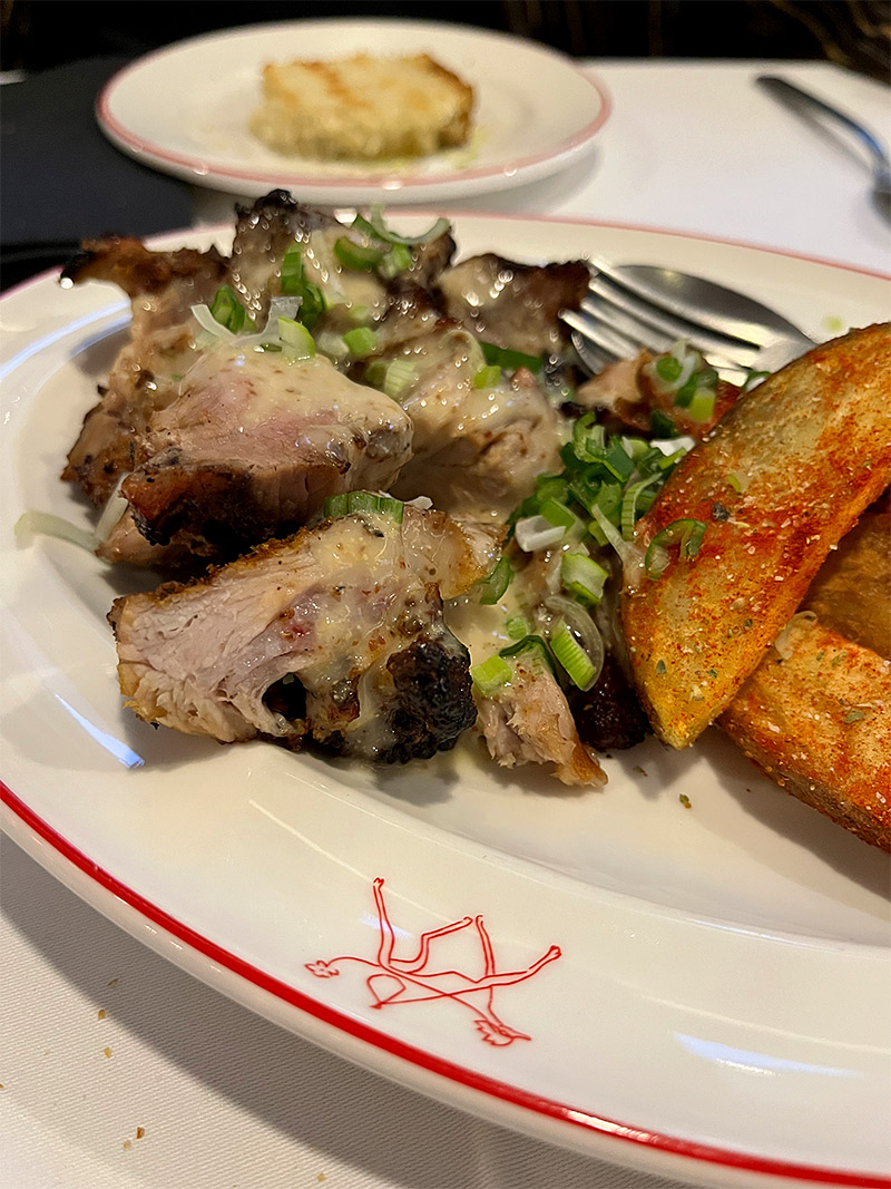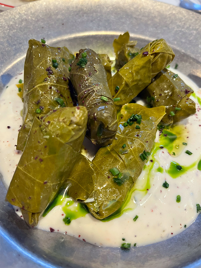 Καλοφτιαγμένα είναι τα ντολμαδάκια (10€) παρά τις ενστάσεις για την έξτρα χαμηλή θερμοκρασία στην οποία σερβίρονται, τις οποίες ωστόσο απαλύνει ένα ονειρικά αρωματισμένο γιαούρτι που τα συνοδεύει. Εξαιρετικό και αριστοτεχνικά ψημένο είναι το χοιρινό κοντοσούβλι (14€) που ακολουθεί, με τις παχουλές πατάτες του να κάνουν ωραία δεύτερη φωνή στο πιάτο, χάρη στα ανατολίτικα μπαχαρικά τους που δίνουν σπιρτάδα και τσαχπινιά.