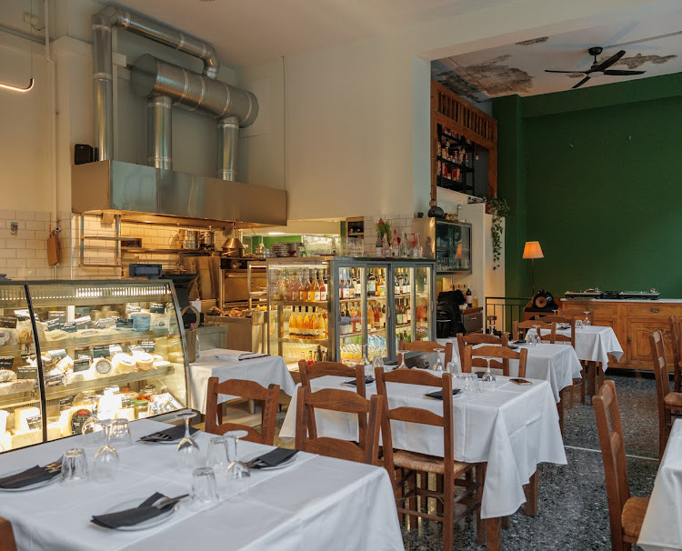 Στην είσοδο σε υποδέχονται βιτρίνες με λιμπιστικά τυριά και αλλαντικά που μπορείς να πάρεις φεύγοντας για το σπίτι. Στο βάθος το πικάπ στέκεται υπερήφανα πάνω σε νοσταλγική εταζέρα με μαρμάρινη επιφάνεια και πλάι σε ηχεία τελευταίας τεχνολογίας. Παίζει τέλειες, γκρούβι τζαζιές ό,τι πρέπει για Κυριακή απόγευμα. Μαθαίνουμε ότι οι μουσικές αλλάζουν ανάλογα τη μέρα και τον DJ, παίζουν όμως πάντα αυστηρά και μόνο από βινύλια.