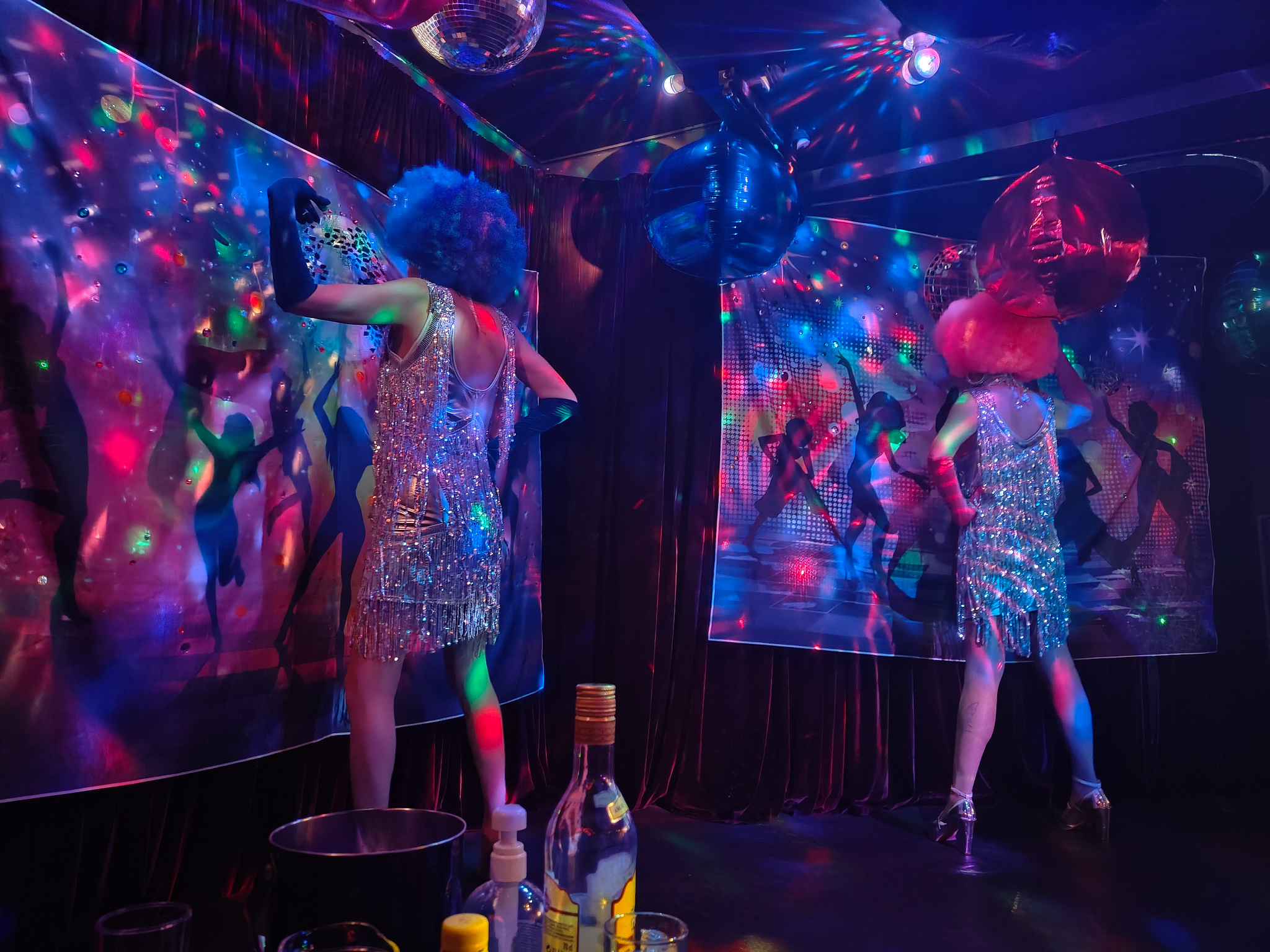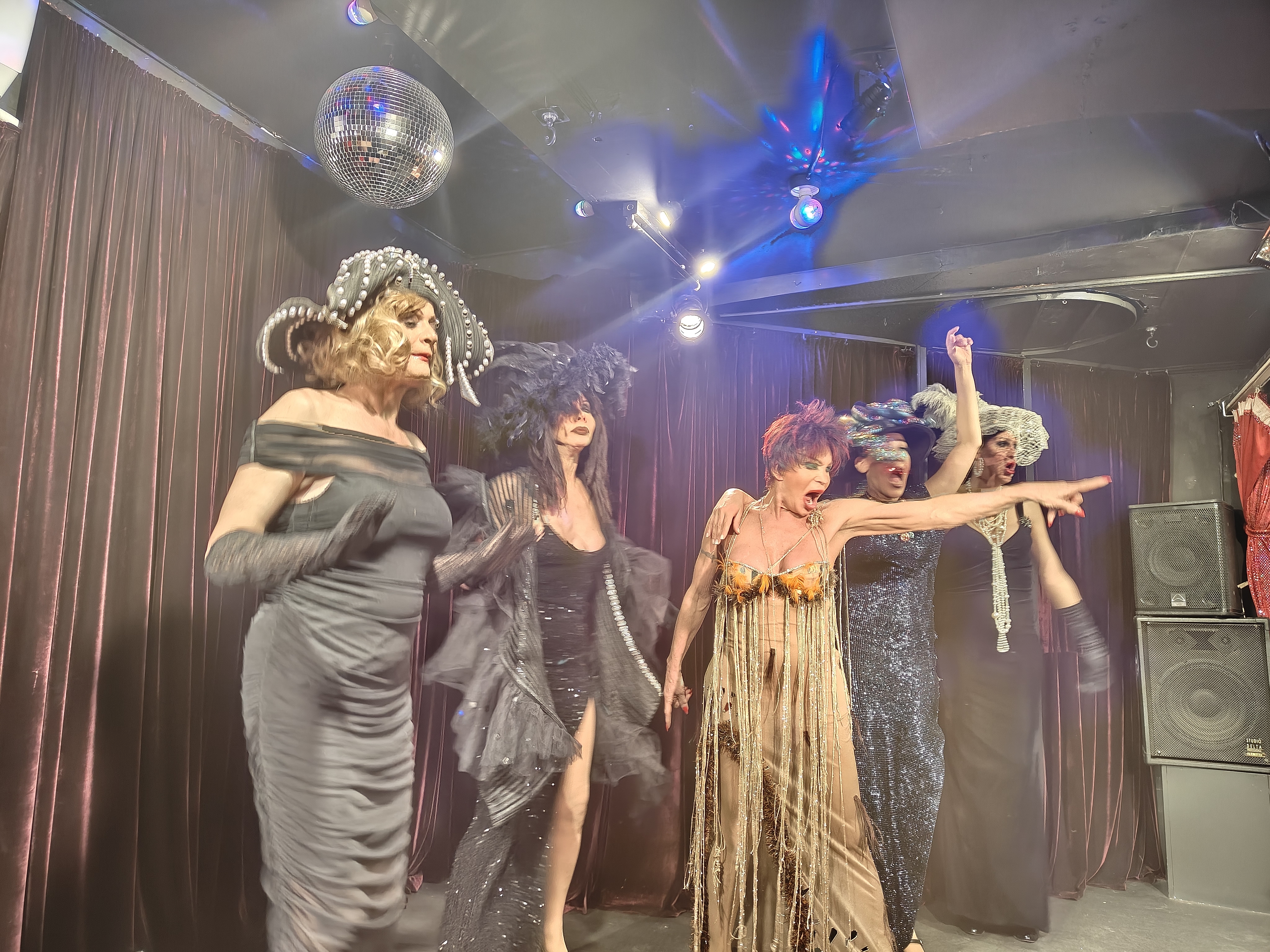 Για δύο ολόκληρες ώρες, από τη 1 τα μεσάνυχτα, χορεύουν, τραγουδούν, μιμούνται αγαπημένες καλλιτέχνιδες – από την Άλκηστη Πρωτοψάλτη και την Μαρίνα Σάττι μέχρι τη Λάιζα Μινέλι, τη Σερ και τη… Σωτηρία Μπέλλου. Με χιούμορ, νάζι, θράσος και ήθος. Αξίζουν πραγματικά συγχαρητήρια στην Μάνια Λεμπέση, την Εκάτη Σταματίου, τη Ρία Νόλλη και στην Αλίκη Βασιλάκη, όλες τους εξαιρετικές περφόρμερ.