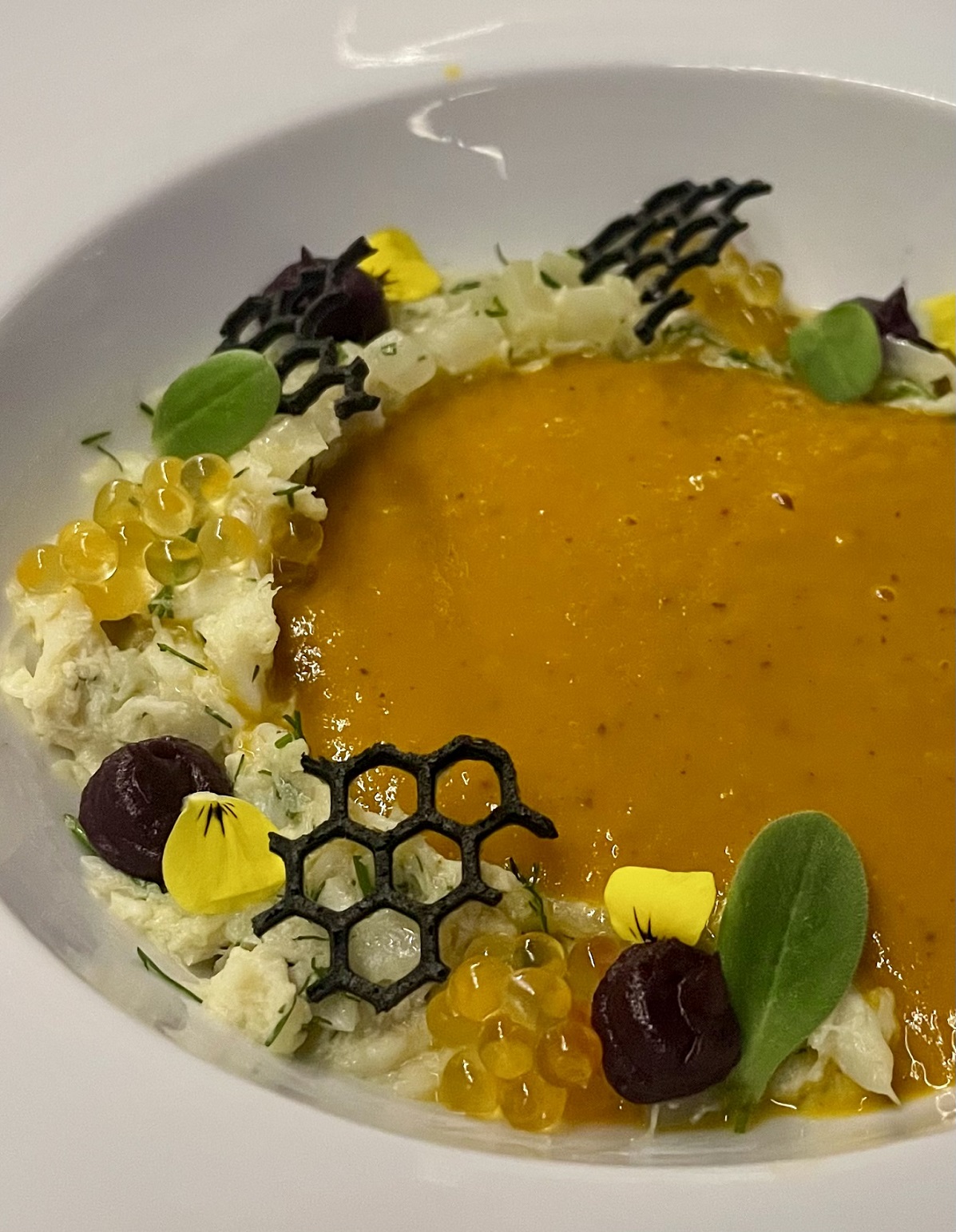 Στο μαρινάτο λαυράκι, το ούζο και ο ζωμός ελληνικής σαλάτας έδωσαν το αρωματικό τους στίγμα, ενώ η κάθε κουταλιά της ιδιότυπης βελουτέ κακαβιάς με κρόκο Κοζάνης και ζωμό από όστρακα που ανακατεύτηκε με το ντόπιο μπλε καβούρι και τη μαραθόριζα, ήταν παραπάνω από απολαυστική. Στο γιουβέτσι-στιφάδο με μοσχαρίσια μάγουλα, τέλεια χυλωμένο αλλά και με δάγκωμα κριθαράκι Ταϋγέτου, ελαφρά πικλαρισμένα και εξ ου στακάτα κρεμμυδάκια και βελούδινη κρέμα από ναξιώτικο αρσενικό, γεύτηκα ένα από τα πιο αγαπημένα κυριακάτικα φαγητά της παιδικής μου - και όχι μόνο - ηλικίας, σε σύγχρονη εκτέλεση μα και συνάμα γλυκά οικείο.