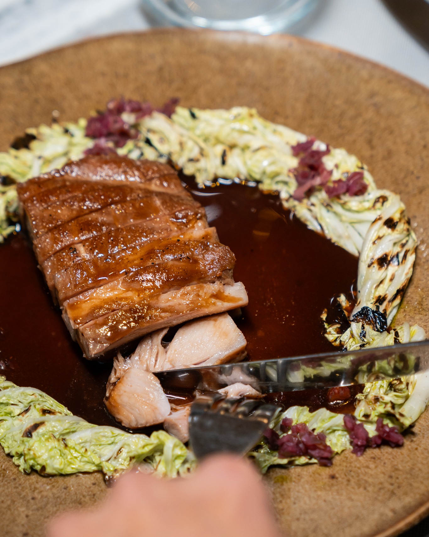 Δεν ήταν δυνατόν να αρνηθούμε την πρόσκληση να δοκιμάσουμε τις γαρίδες Κόκκινης Κοιλάδος (19€) με λάιμ λωτό και πίκλα φινόκιο που ήταν εξαιρετικά νόστιμες φέρνοντας την άνοιξη στο πιάτο και στον ουρανίσκο μας. Το βιολογικό χοιρινό (22€) από τη Φάρμα Χαρτάκη με ψητό λάχανο και σάλτσα με κόκκινο λαχάνο ήταν ολόσωστα ψημένο κι έξτρα μυρωδάτο όπως και το αρνί φρικασέ (22€) μια fine dining ωδή στο παραδοσιακό ελληνικό πιάτο που έχει αφήσει εποχή στις εγχώριες κουζίνες.