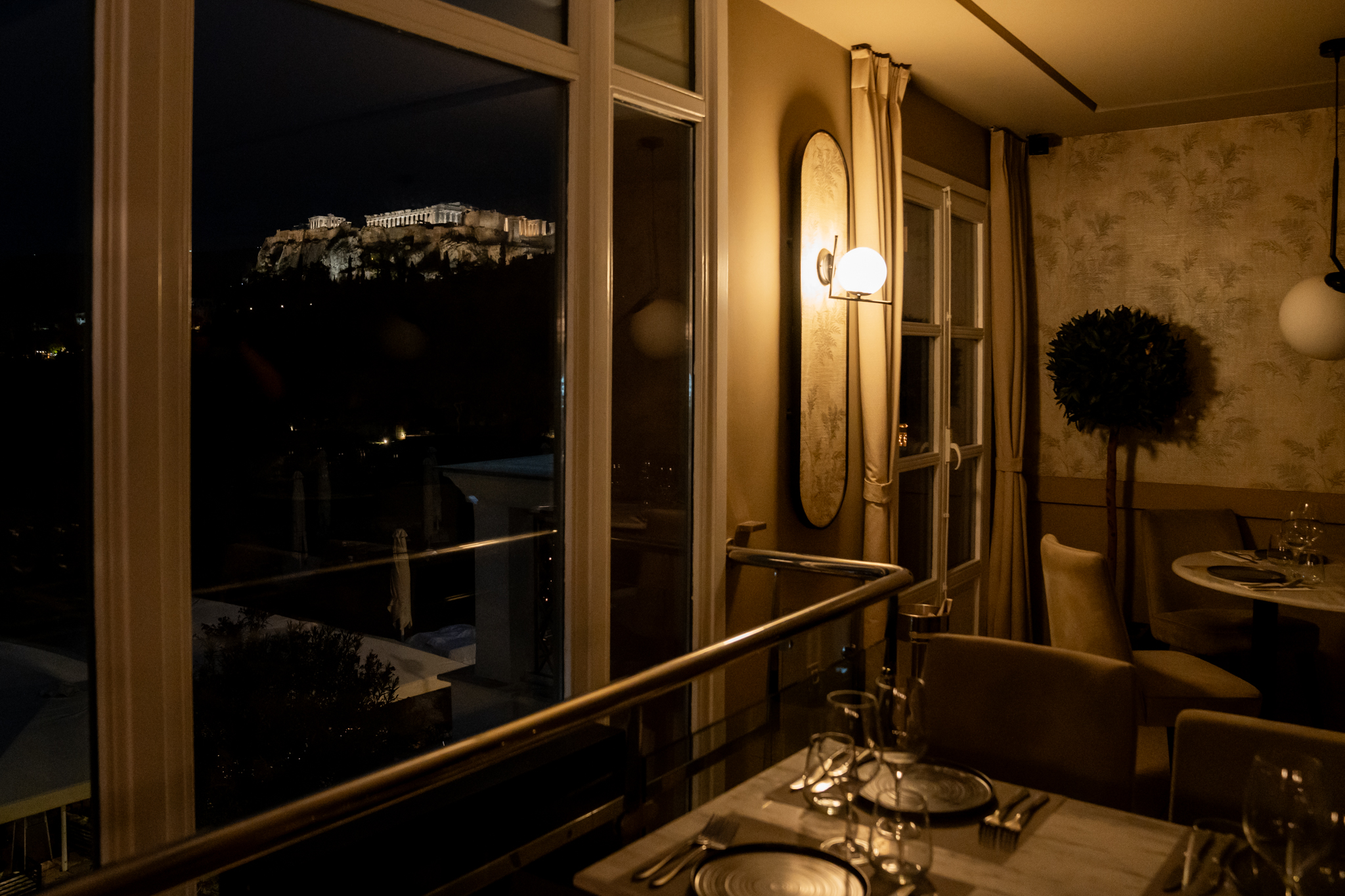Δεν αρκεί απλώς να φτάσεις εδώ· πρέπει να το επιτρέψεις στον εαυτό σου. Να αφεθείς. Να αφήσεις πίσω το άγχος της ημέρας, τη βιασύνη και τον θόρυβο της πόλης και να ακολουθήσεις τον ρυθμό που υπαγορεύει ο χώρος: αργός, ιεροτελεστικός, απολαυστικός. Η θέα παίζει τον ρόλο της: η φωτισμένη Ακρόπολη, τα αναμμένα φώτα της πόλης που τρεμοπαίζουν σαν κεριά, η αίσθηση πως βρίσκεσαι στην καρδιά της Αθήνας αλλά ταυτόχρονα αποκομμένος από αυτήν. Και έπειτα, έρχεται το φαγητό.