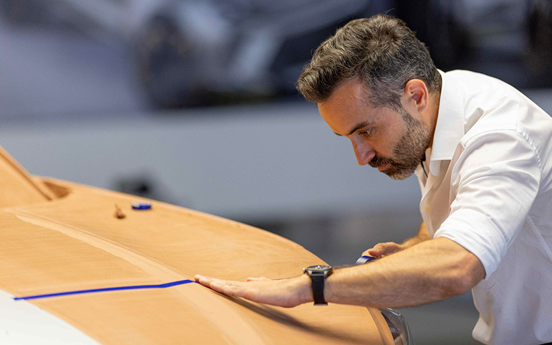 «Σχεδιάζουμε την ουσία του μοντέλου, το μετατρέπουμε ψηφιακά για να κατανοήσουμε τους όγκους του, αλλά αν θέλουμε πραγματικά να νιώσουμε τις επιφάνειες και να επιβεβαιώσουμε ότι οι αναλογίες λειτουργούν, χρειαζόμαστε ένα μοντέλο πλήρους κλίμακας», εξηγεί ο σχεδιαστής. Κάπου εδώ ο πηλός αποκτά κεντρικό ρόλο σε αυτή την ιστορία.