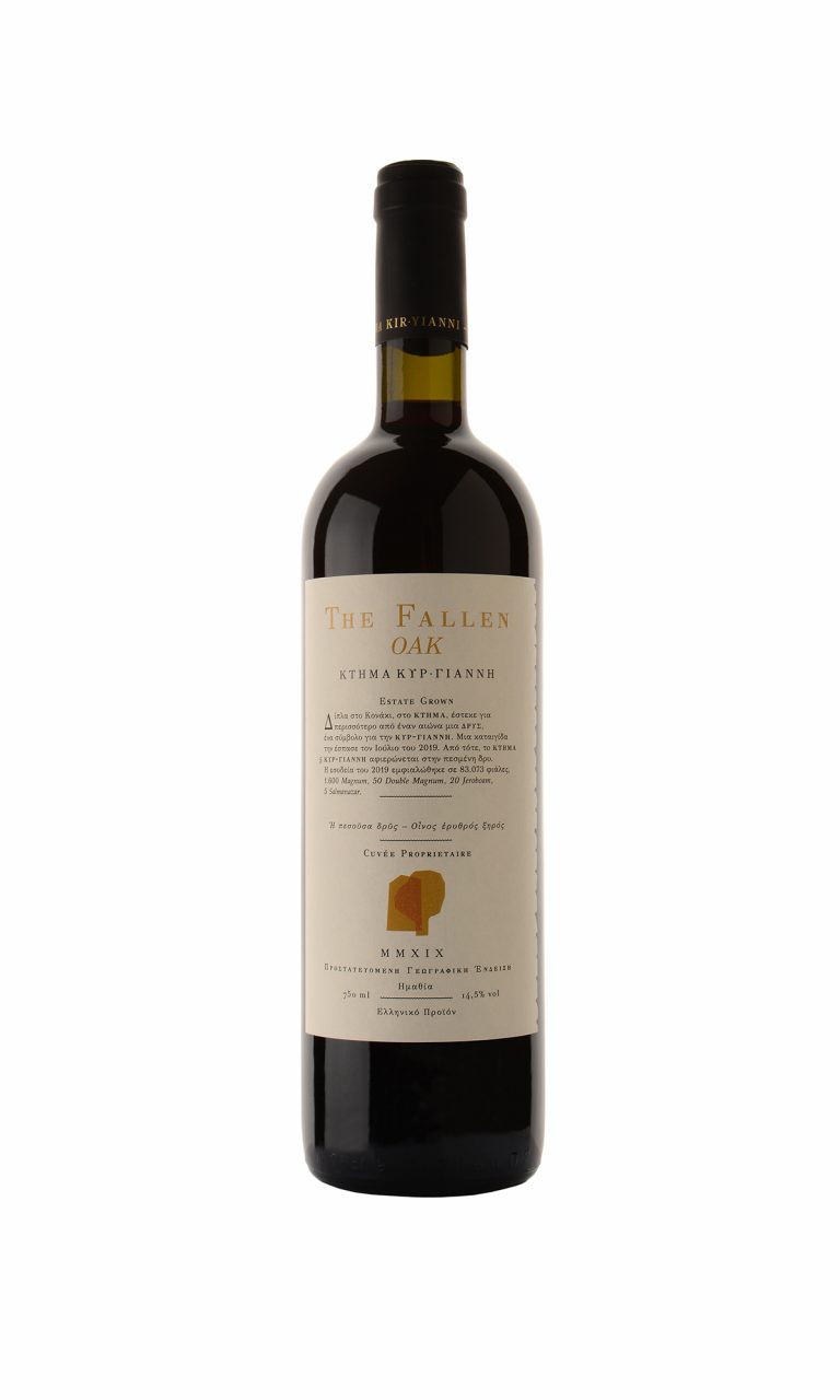 Το Fallen Oak του Κτήματος Κυρ-Γιάννη είναι ένα κρασί που μιλάει με βάθος και ακρίβεια. Στο ποτήρι, το βαθύ ρουμπινί χρώμα του προϊδεάζει για τη συγκεντρωμένη ένταση που ακολουθεί. Στη μύτη, το κεράσι κυριαρχεί, πλαισιωμένο από νότες βανίλιας που αναδύονται νωχελικά, σαν υπαινιγμός ευγενικού βαρελιού. Στο στόμα, η φρουτώδης ένταση παραμένει, με πλούσια, στρογγυλή δομή και βελούδινες τανίνες που χαϊδεύουν τον ουρανίσκο. Η οξύτητα φροντίζει για την ισορροπία, ενώ η μακρά επίγευση αφήνει μια ανεπαίσθητη, πικάντικη νότα που σε καλεί να ξαναγεμίσεις το ποτήρι.