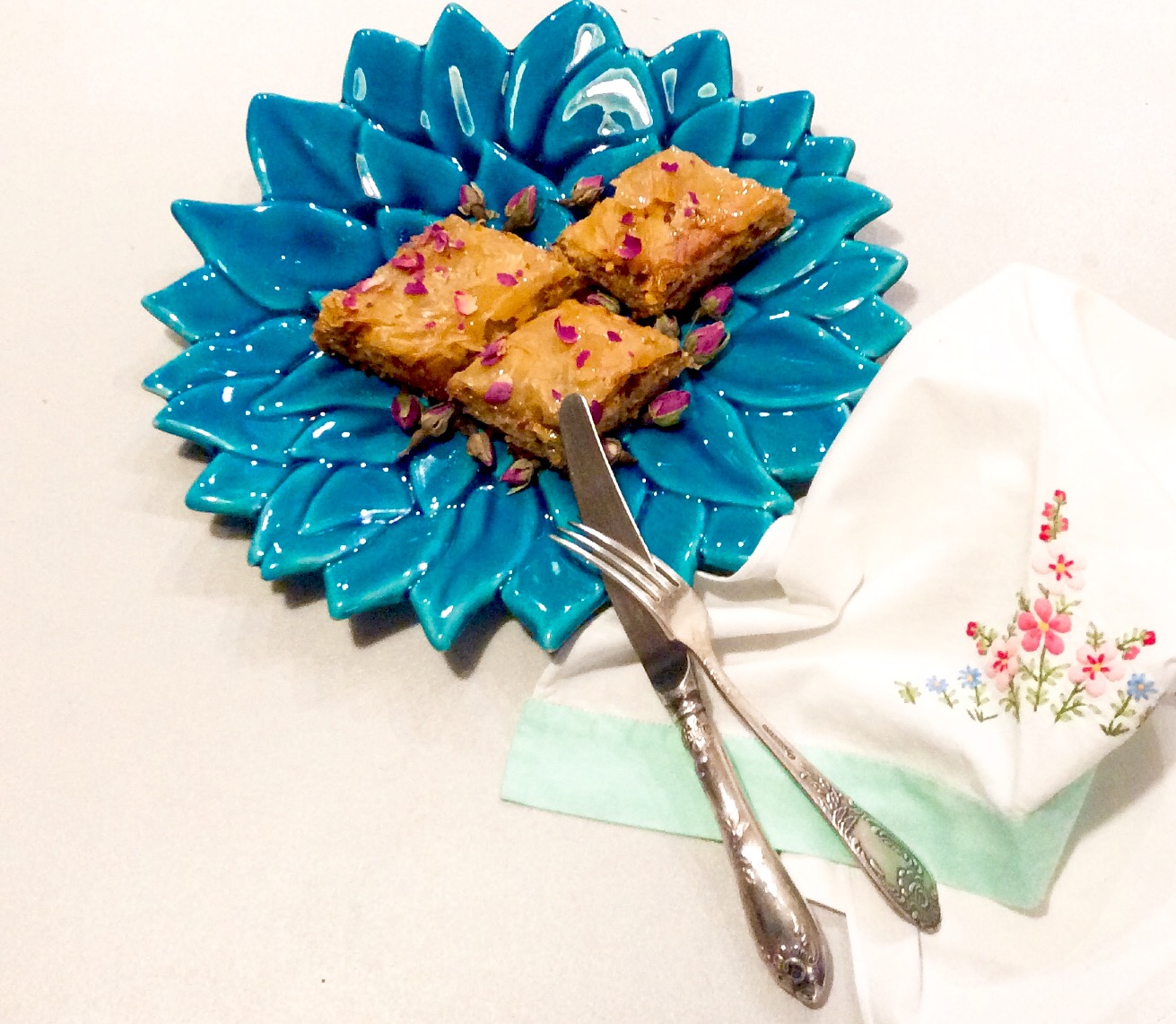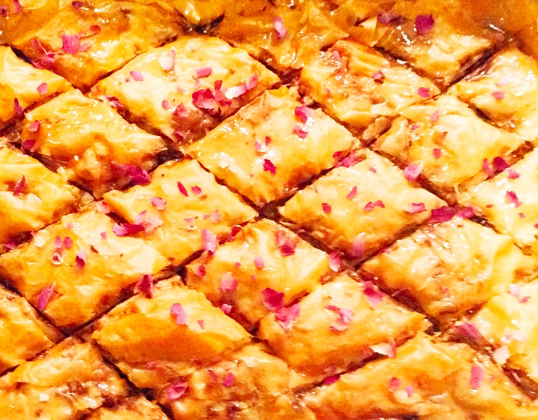 ΜΠΑΚΛΑΒΑΣ ΜΕ ΦΙΣΤΙΚΙΑ ΑΙΓΙΝΗΣ, ΜΑΣΤΙΧΩΤΟ ΤΥΡΙ & ΣΙΡΟΠΙ ΜΕ ΡΟΔΟΝΕΡΟ