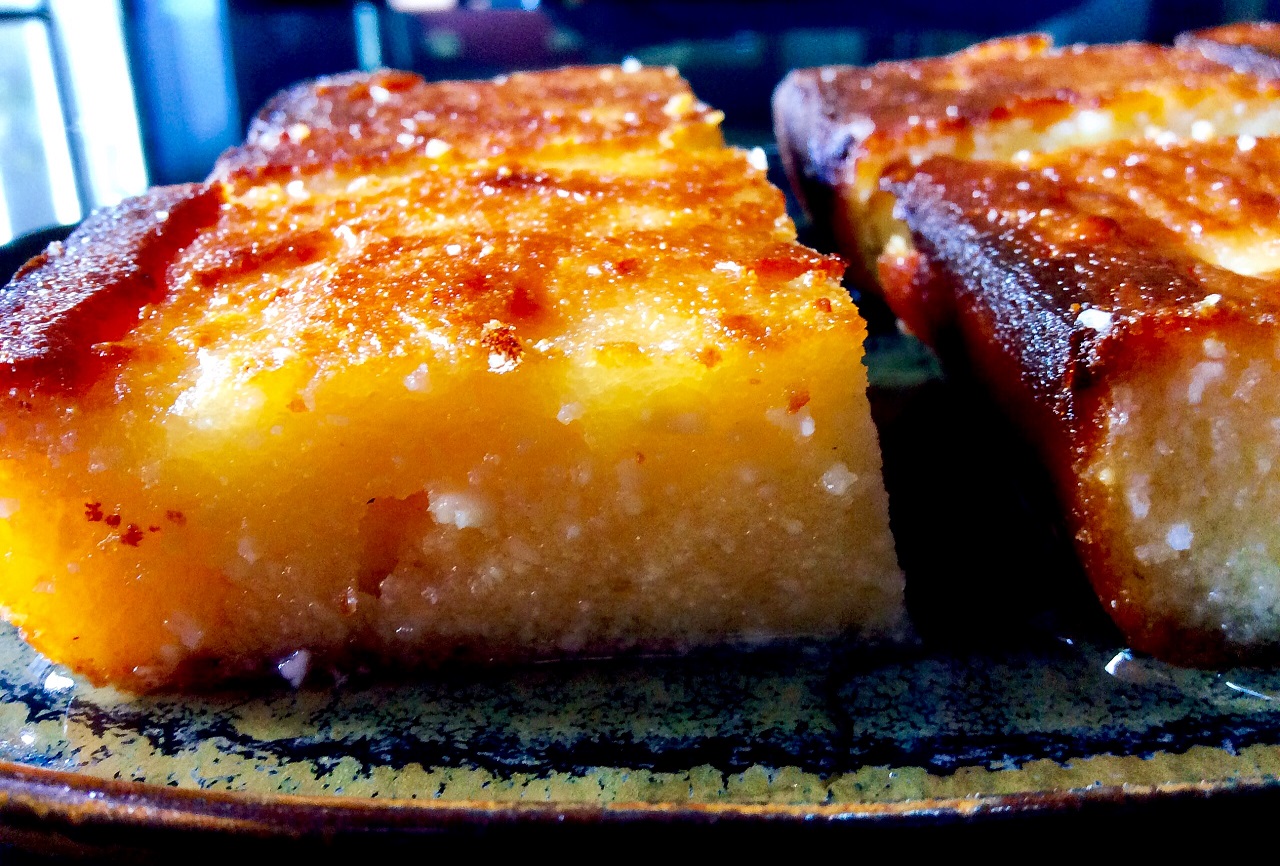 Μόλις βγάλουμε το γλυκό από τον φούρνο το χαράζουμε μέχρι κάτω σε κομμάτια και το σιροπιάζουμε όσο είναι ακόμη καυτό, με το επίσης καυτό σιρόπι. Προσθέτουμε το σιρόπι σταδιακά και περιμένουμε να απορροφηθεί η προηγούμενη δόση πριν προσθέσουμε την επόμενη. Είναι πολύ πιθανό να μην χρειαστεί όλη η ποσότητα: σταματάμε όταν δούμε ότι το σιρόπι λιμνάζει για πολλή ώρα στην επιφάνεια και δεν απορροφάται πλέον (εγώ έβαλα ελάχιστα παραπάνω από τα ¾ της ποσότητας). Απολαμβάνουμε το γλυκό σε θερμοκρασία δωματίου. Αν περισσέψει, μπορούμε να το κρατήσουμε εκτός ψυγείου για μία μέρα, αλλά μετά θα πρέπει να το βάλουμε στο ψυγείο, από όπου και θα το βγάλουμε αρκετή ώρα πριν να το φάμε, για να επανέλθει η γεύση.