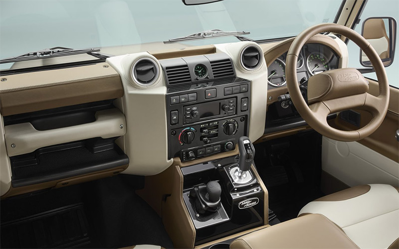 Διατίθεται επιλογή ζαντών Wolf 16 ιντσών ή ζαντών αλουμινίου Sawtooth 18 ιντσών – η πρώτη σε μαύρο ή Limestone. Στο εσωτερικό, υπάρχουν πέντε μονόχρωμες ή οκτώ δίχρωμες επιλογές δέρματος, με χρώματα όπως Caraway, Liberty Blue και Garnet, καθώς και πολλά άλλα ειδικά φινιρίσματα. Οι ασυνήθιστες επιλογές και αξεσουάρ περιλαμβάνουν ένα ενσωματωμένο ψυγείο κρασιών και μια προσαρμοσμένη σχάρα για σανίδες του σερφ, επιτρέποντας στο Land Rover Classic να ταιριάξει σε κάθε τρόπο ζωής.