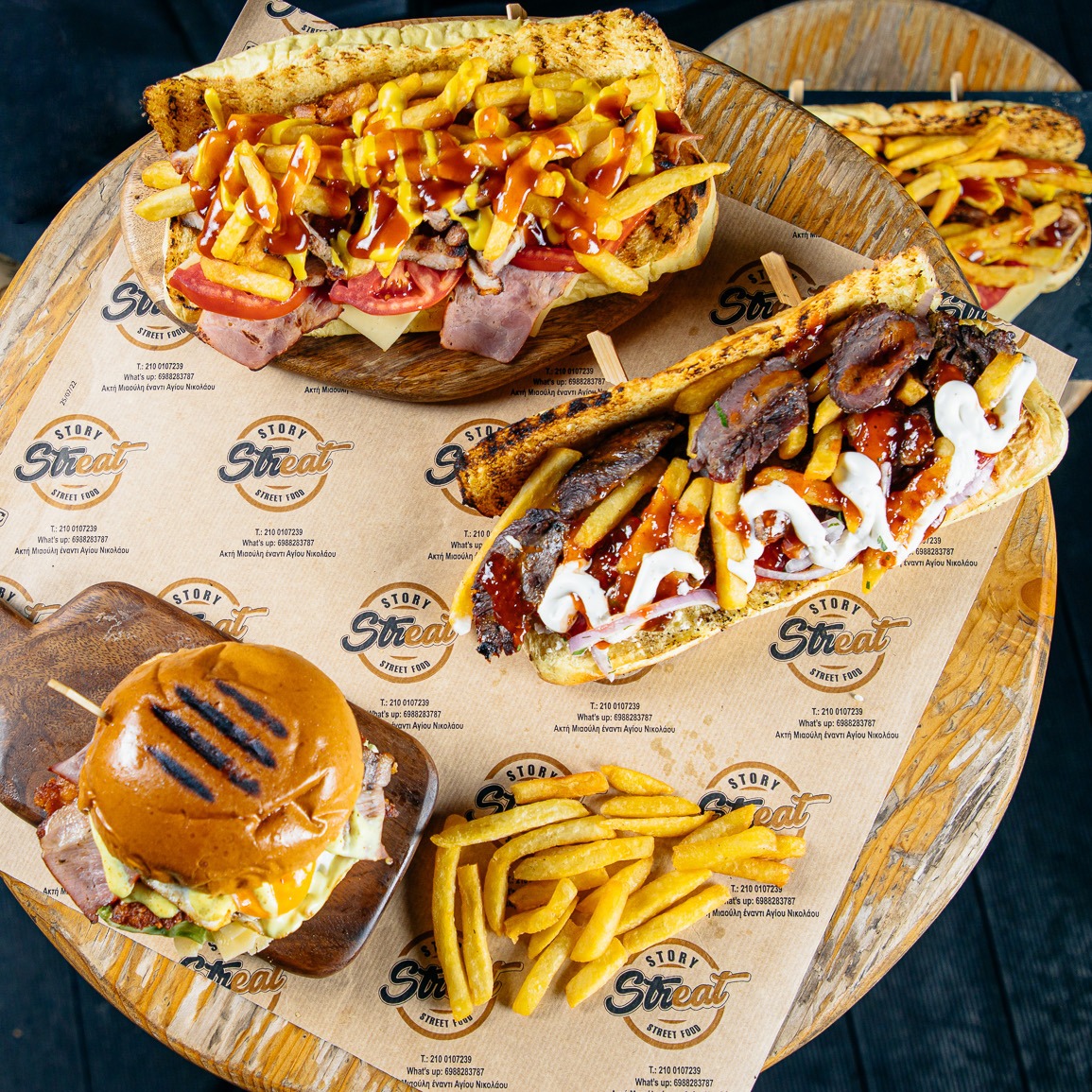 Όμως σαν βρεθείς εδώ είναι κρίμα να μην δοκιμάσεις και κάποιο άλλο από τα εκλεκτά σάντουιτς ή μπέργκερ του καταλόγου που ξεκινούν από τα 6,5€. Εύκολα ξεχωρίζει το αρμένικο σάντουιτς (8,5€) με 2 κεμπάπ, σουτζούκι αρμένικο, gouda, πατάτες τηγανητές, φρέσκο κρεμμύδι, ντομάτα, σως γιαουρτιού και σως πιπεριάς. Οι λάτρεις του spicy street food θα βρουν εδώ τον παράδεισό τους από την πρώτη κιόλας μπουκιά. Αν τώρα θες να τεστάρεις τις αντοχές σου και να ξεχωρίσεις από τα παιδάκια που παραμονεύουν στις ουρές του Story Streat τότε το Beast pork σάντουιτς (14,5€) θα γίνει το Έβερεστ σου. Έχουμε και λέμε: 2 θηριώδεις πανσέτες, 2 καλοψημένα μπριζολάκια, 4 φέτες μπέικον, ντομάτα, κρεμμύδι, μια ολόκληρη μερίδα φρεσκοτηγανισμένες πατάτες, κέτσαπ μουστάρδα και σαλάτα επιλογής συμπληρώνουν μια δυσθεώρητη σαντουιτσάρα βγαλμένη από τα λιχούδικα όνειρά σου. Άχαστο αν μας ρωτάς.