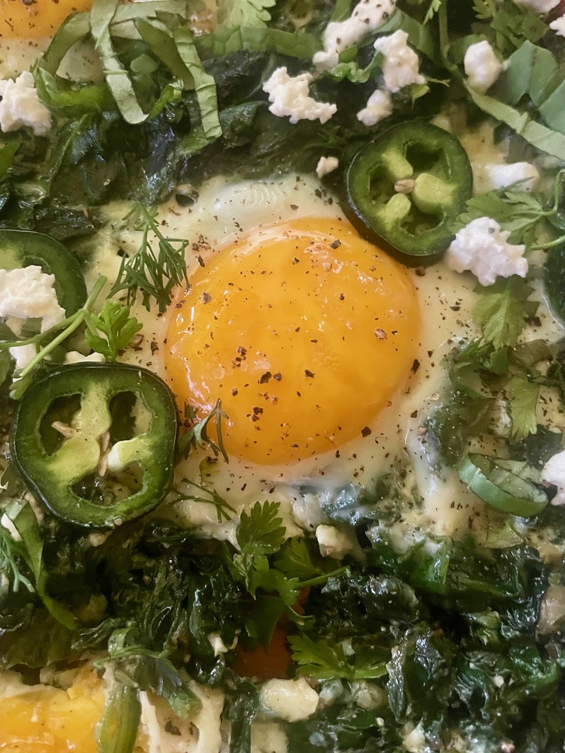 Η καταπράσινη, μυρωδάτη shakshuka της άνοιξης