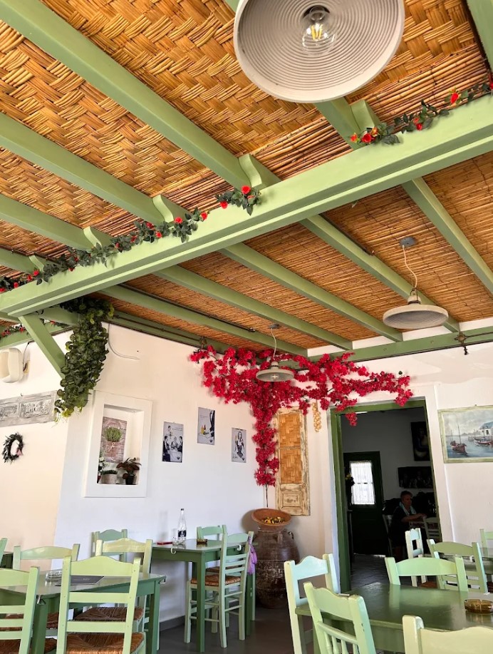 Ένα από τα πρώτα που θα σου συστήσουν οι ντόπιοι αν ρωτήσεις πού να πας για μαγειρευτά, ο Κούτσικος απλώνει τα τραπέζια του σε μια νοσταλγική αυλίτσα κάτω από τις καλαμιές, τα στρώνει με καρό τραπεζομάντηλα και τα φορτώνει με λαχταριστά μαγειρευτά που μοιάζουν σαν να βγήκαν από την κουζίνα της γιαγιάς σου –αν είχε νησιώτισσα γιαγιά. Στα «οπωσδήποτε» σημείωσε το λεμονάτο μοσχαράκι με φρέσκες τηγανιτές πατάτες, τη ρεβυθάδα στον φούρνο, το ιμάμ, το κοκκινιστό με χυλοπίτες, τις τραγανές κροκετούλες από ντόπιο τυρί και τους κολοκυθοκεφτέδες. Οι λάτρεις των ψητών θα βρουν κι αυτοί εδώ τον παράδεισό τους, με αρνίσια παϊδάκια, ζουμερά μπιφτέκια, χειροποίητα λουκάνικα και δεν συμμαζεύεται. Εννοείται πως θα πάρεις και χωριάτικη, από αυτές που μοσχοβολούν ντομάτα και το κάνουν εύκολο να εντοπίσεις τους Αθηναίους στα τραπέζια (είναι πάντα αυτοί που σχολιάζουν πόσο μοσχοβολά η ντομάτα). Μουσική από παλιά ρεμπέτικα μέχρι Ρίτα Σακελαρίου, κρασάκι χύμα και λογαριασμός στα 20-25€ το άτομο.