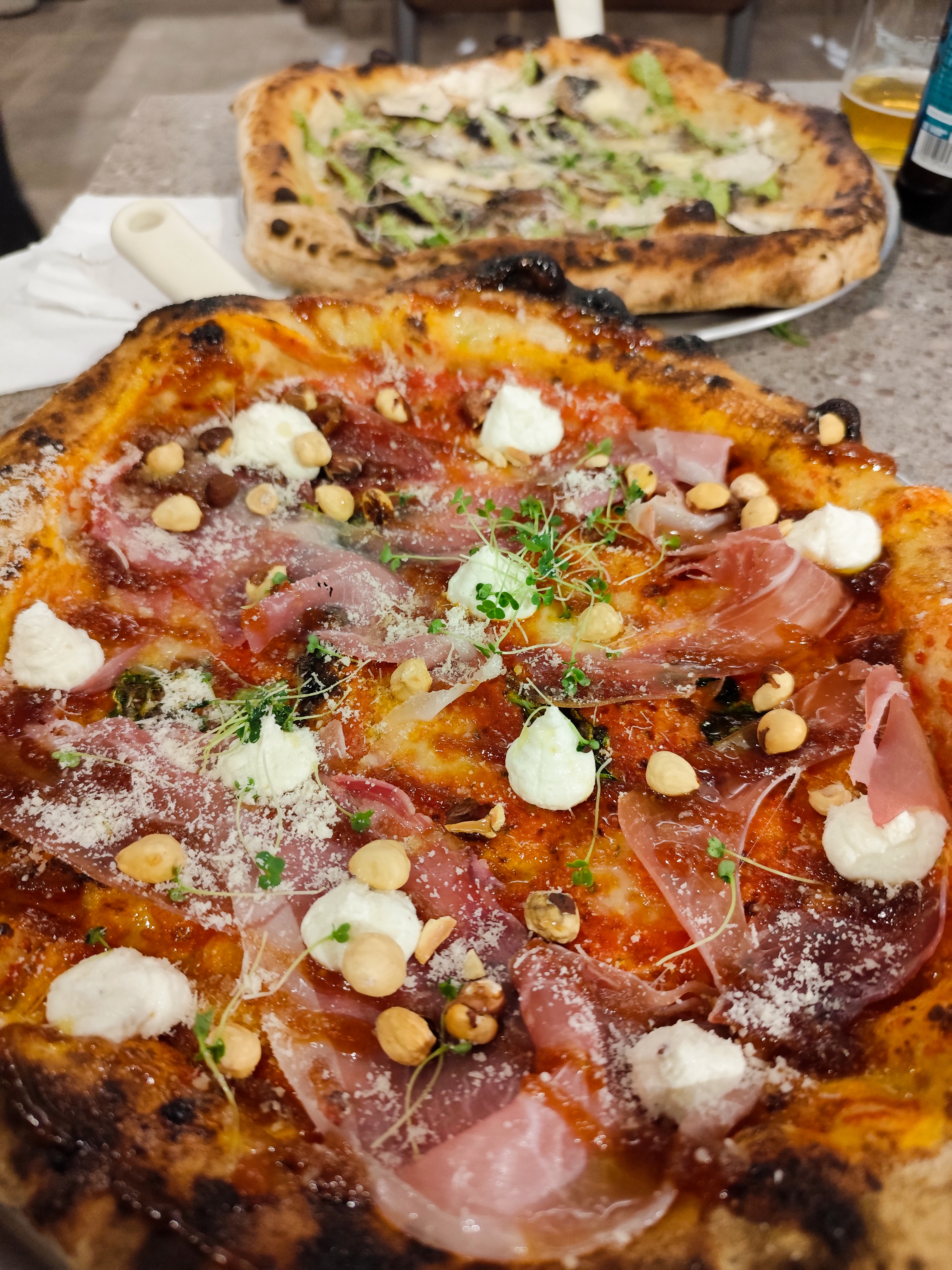 Η Dada (14€) με αρωματισμένη ρικότα, παρμεζάνα, προσούτο crudo, μοτσαρέλα fior di latte, μαρμελάδα σύκου, καβουρδισμένο φουντούκι, λάδι μέντας και βασιλικό ήταν επίσης εξαιρετική με το twist της μαρμελάδας σύκου να δίνει μια υφάλμυρη γεύση άλλο πράμα. Σαν σωστοί μανιταρολάγνοι δεν γινόταν να προσπεράσουμε την Futurista (14,5€) με κρέμα παρμεζάνας, άγρια μανιτάρια, φρέσκια τρούφα, ελαιόλαδο, pesto φασκόμηλου, φρέσκο βασιλικό και μοτσαρέλα fior di latte και πολύ καλά κάναμε αφού η απόλυτα ισορροπημένη μα και γεμάτη γεύση της μας αποζημίωσε από την πρώτη μπουκιά.