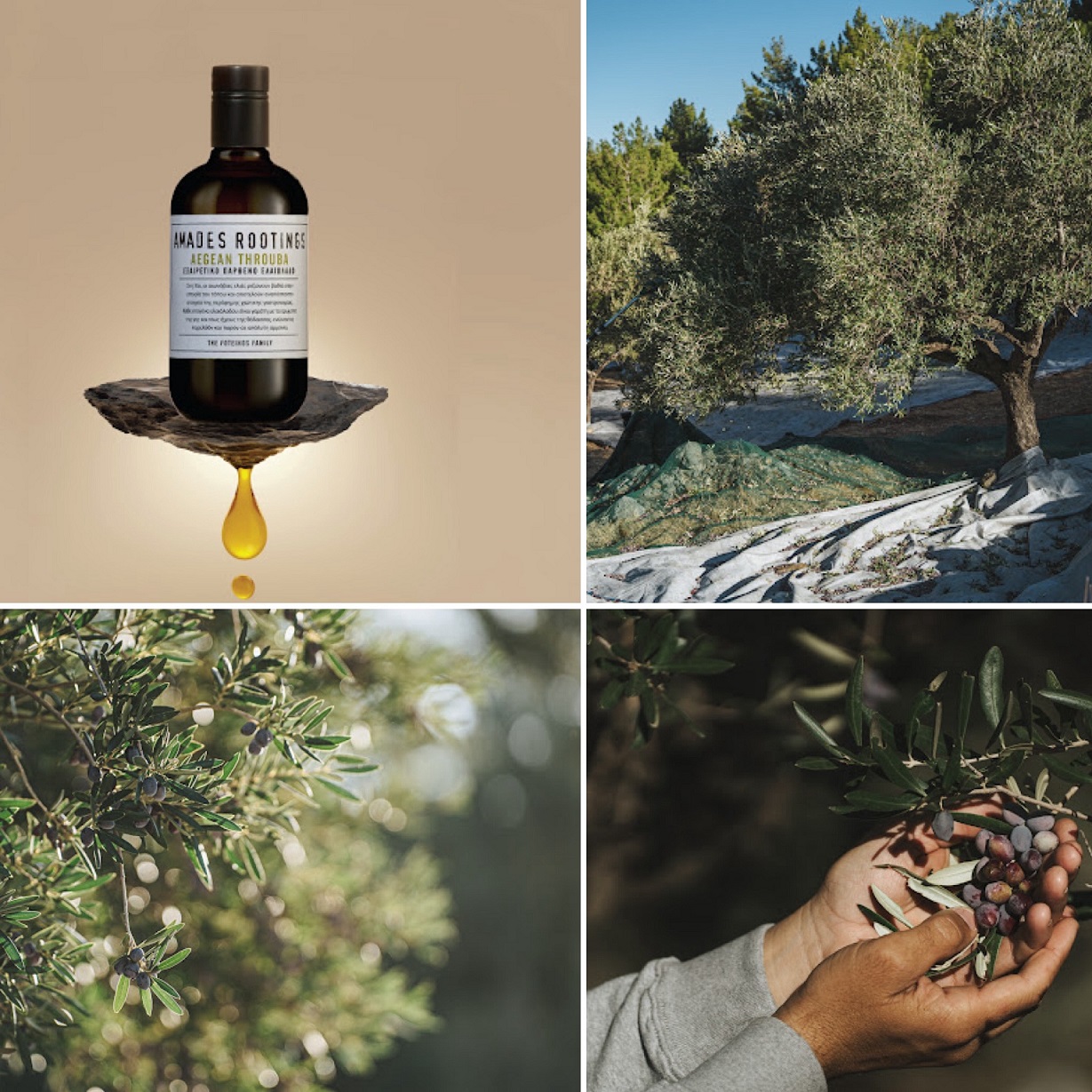 Η γευσιγνωσία άνοιξε με το εξαιρετικό παρθένο ελαιόλαδο, Amades Rootings Aegean Throuba από τον γεωπόνο, γευσιγνώστη και εξειδικευμένο σύμβουλο Αγροτικού & Αγροδιατροφικού Κλάδου, Κώστα Λύρη. «Η Θρούμπα Χίου αποτελεί έναν από τους γαστρονομικούς θησαυρούς της Χίου», ανέφερε ο κος Λύρης, και συνέχισε: «Η θρούμπα ή κουρμάδα, όπως την λένε οι ντόπιοι, είναι ελιά διπλής ιδιότητας, επιτραπέζια και ελαιοποιήσημη, και δεν κυκλοφορεί ευρέως στο εμπόριο λόγω του μικρού όγκου παραγωγής της. Έχει τη μοναδική ιδιότητα να αποκτά τη γλυκιά της γεύση με φυσικό τρόπο, χωρίς καμία επεξεργασία. Αποτελεί τη βασική επιτραπέζια ελιά στη Χίο. Πρόκειται για ελιά φυσικής ωρίμασης που ωριμάζει επάνω στο δέντρο και μαζεύεται κυρίως με τα χέρια, ώστε να διασφαλιστεί η ποιότητα του καρπού. Καταναλώνεται φρέσκια ή διατηρείται σε άλμη χωρίς συντηρητικά. Επίσης, ανάλογα με τη χρήση, μαζεύεται τον Οκτώβριο, όσο είναι ακόμα πράσινη, και γίνεται τσακιστή ή οδηγείται προς ελαιοποίηση.
