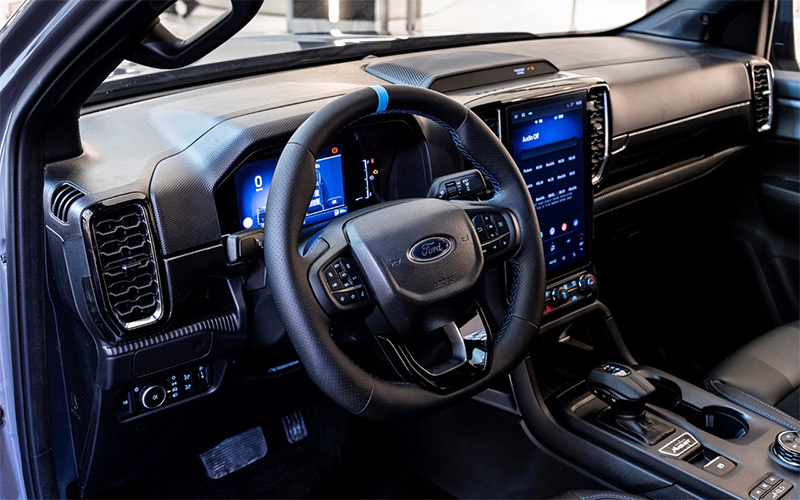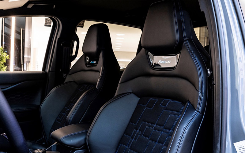 Το χαρακτηριστικό και προηγμένο εσωτερικό του διπλοκάμπινου pick-up μοντέλου της Ford διαθέτει στην έκδοση MS-RT νέα καθίσματα με σπορ σχεδίαση, τα οποία παρέχουν βελτιωμένη άνεση και υποστηρίζουν καλύτερα τo σώμα των εμπρός επιβατών.