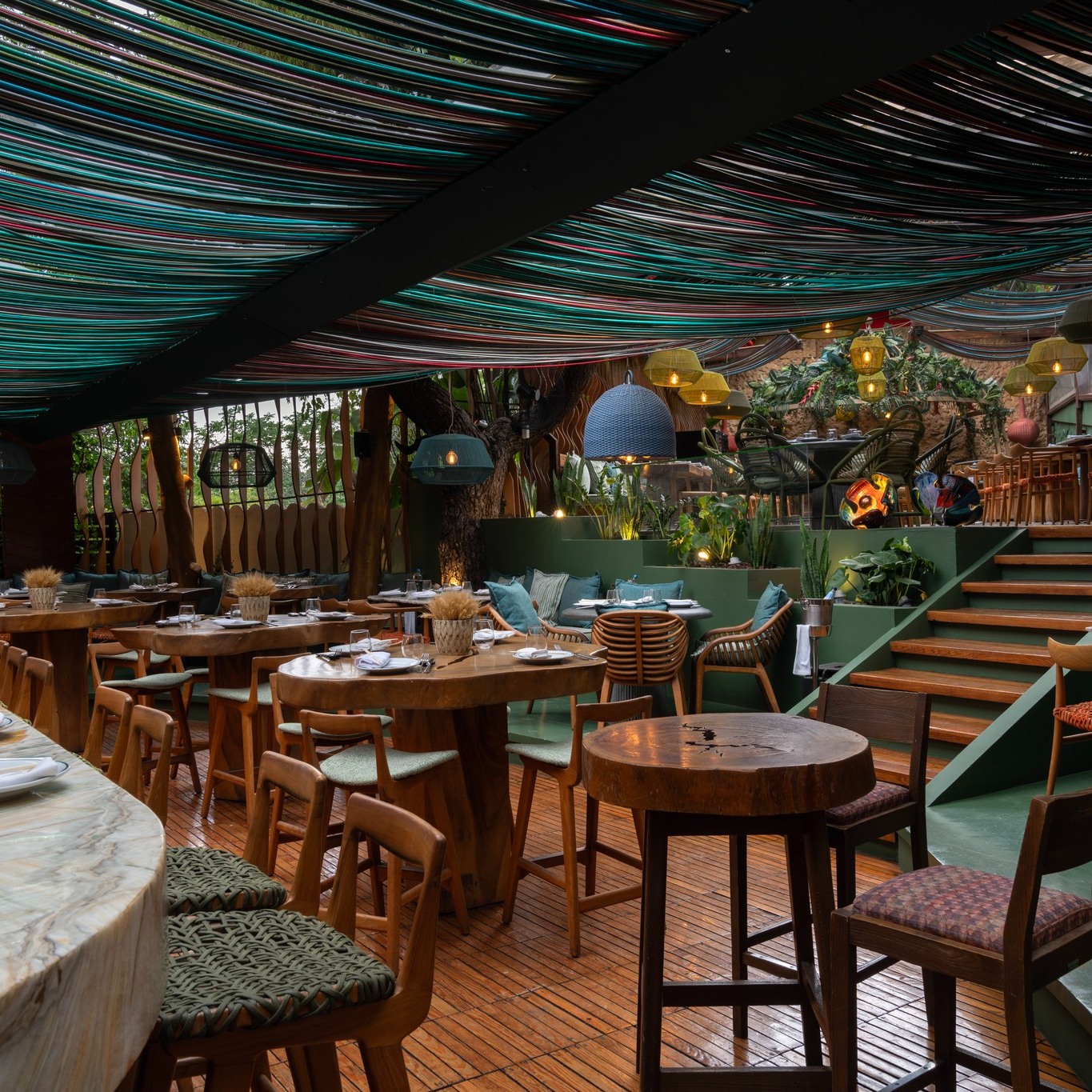 Αναπαυτικές καρέκλες, ψάθινα φωτιστικά, ολάνθιστα και καταπράσινα παρτέρια συνθέτουν ένα «ταξιδιάρικο» background για το δείπνο σου ενόσω η τεράστια ολόφωτη μπάρα και τα κοκκινοπράσινα σκοινιά της οροφής κλέβουν τις διακοσμητικές εντυπώσεις. Ιδανικό για τις ζεστές αλλά και τις δροσερές βραδιές του φετινού θέρους, το WooWoo Garden είναι η επιτομή του εξωτικού, γεμάτου χρώματα και μουσικές fine dining προορισμού για όλους τους λάτρεις της ασιατικής γαστρονομίας, προσφέροντας μια εμπειρία που ξεκινά από το πιάτο και φτάνει ως την αυτοσχέδια πίστα – κυριολεκτικά. Η κουζίνα του WooWoo κινείται στον ρυθμό της pan-Asian φιλοσοφίας: συνταγές και τεχνικές μαγειρικής από την Κίνα, την Ιαπωνία, την Κορέα και την Ταϊλάνδη συναντιούνται σε ένα μενού που είναι ταυτόχρονα παιχνιδιάρικο, σοφιστικέ και ιδανικό για μοίρασμα. Πιάτα με εκρηκτικά αρώματα, φρέσκα υλικά και ασιατικά μπαχαρικά εναλλάσσονται με δημιουργίες που φλερτάρουν με τη fusion λογική, αποδίδοντας τις παραδοσιακές γεύσεις με μοντέρνο τρόπο.