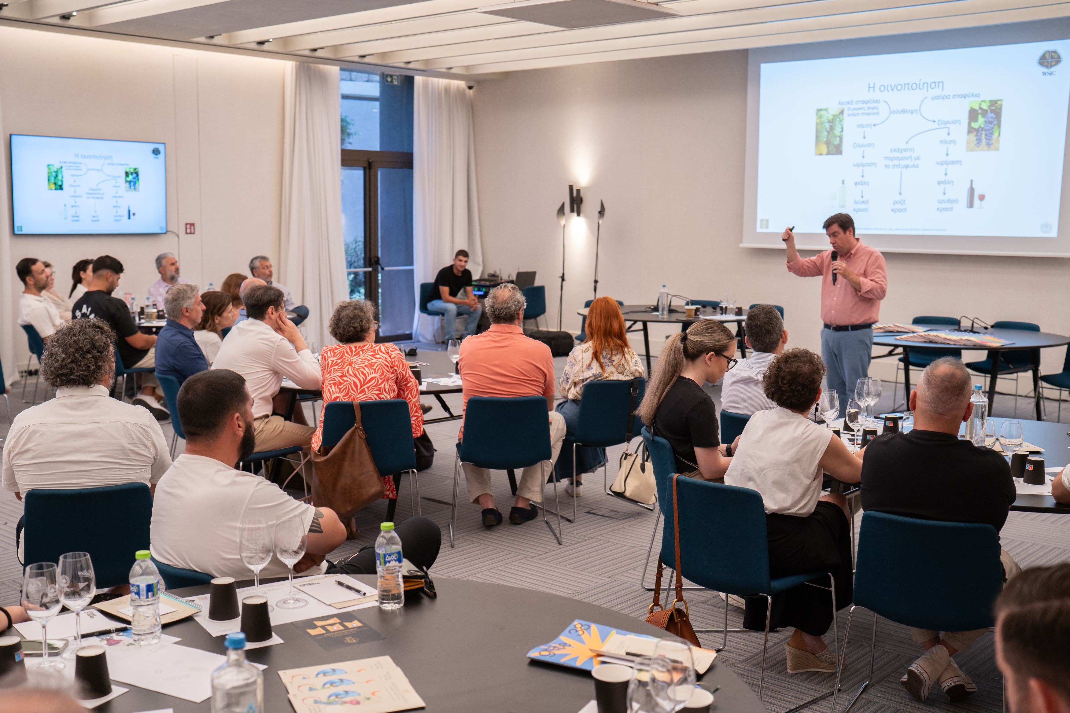 Το μεσημέρι της Κυριακής, στον ίδιο χώρο, την παράσταση έκλεψε ως συνήθως ο χαρισματικός Κωνσταντίνος Λαζαράκης, με ένα masterclass για τις Βασικές Αρχές Γευσιγνωσίας από το Wine & Spirits Professional Center (WSPC) κατά τη διάρκεια του οποίου δοκιμάσαμε εκλεκτούς μεσσηνιακούς οίνους, που και οι 7 ήταν υπέροχοι –εκτιμούμε αυτή την ευκαιρία για κινηματογραφική αναφορά– και μάθαμε πώς δοκιμάζουμε, πώς μυρίζουμε αν θέλουμε να φανούμε ψαγμένοι και πώς αν όχι, και το κυριότερο πώς περιγράφουμε ένα κρασί σε κάποιον που δεν θέλει να το μελετήσει, να το πιεί θέλει –πόσες κινηματογραφικές αναφορές σε μία πρόταση; Προσωπικό αγαπημένο μας, ένεκα η αδυναμία στα ροζέ κρασιά, το κερασένιο Avarino της Navarino Vineyards, ενώ πολύ δυνατές υποψηφιότητες για την δεύτερη θέση ήταν το Sauvignon Blanc από το Κτήμα Ψαρραίος και το χαρακτηριστικά μεσσηνιακό Φιλέρι της Οινοποιίας Ψαρούλη.
