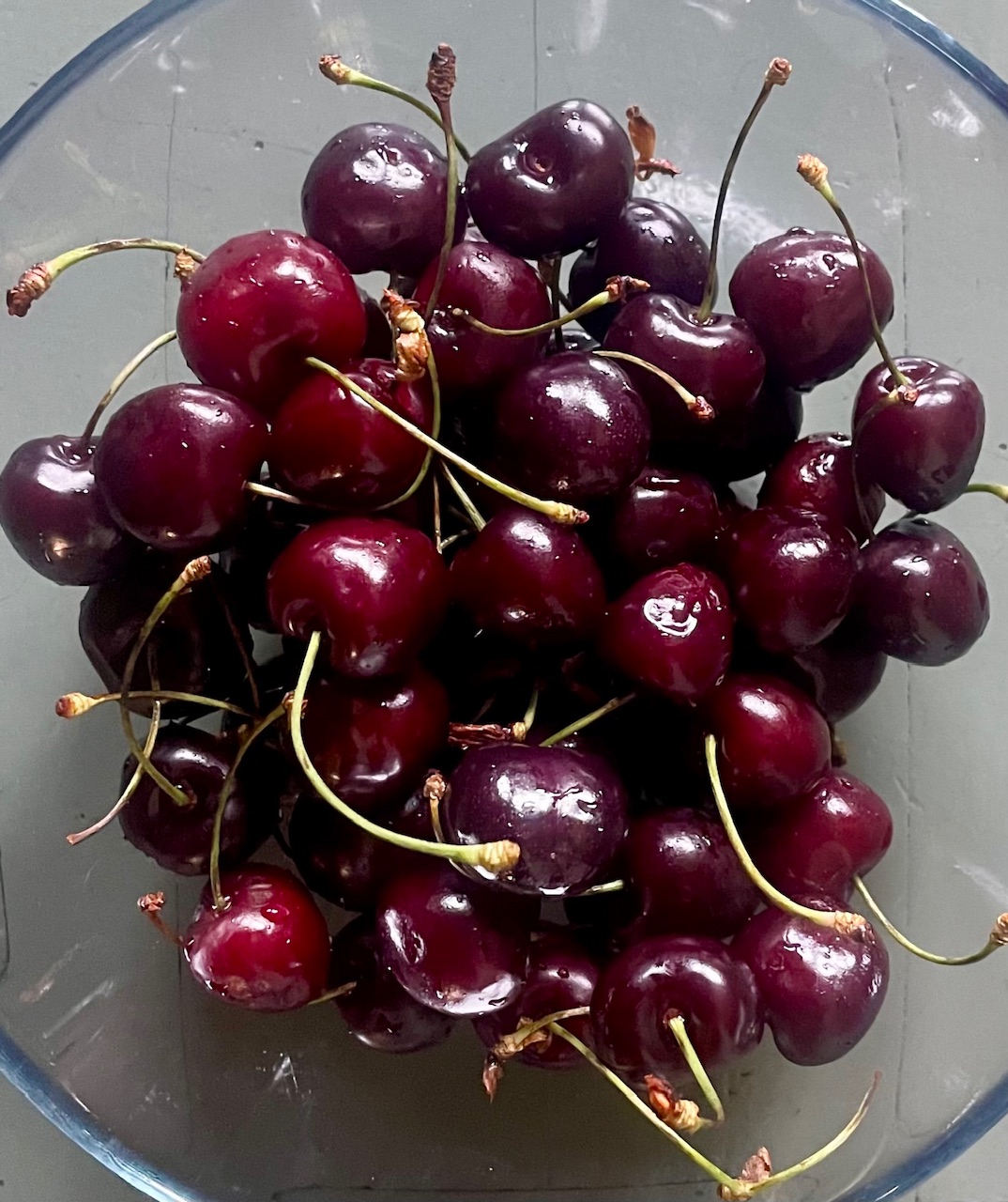 Να που έφτασε και φέτος η ώρα του αποχαιρετισμού της άνοιξης. Αύριο, τέτοια ώρα, θα έχουμε μπει στο καλοκαίρι και θα ζήσουμε τη μεγαλύτερη και φωτεινότερη μέρα του χρόνου. Μέχρι τότε, όμως, αποφάσισα να ξεπροβοδίσω την άνοιξη με ένα γλύκισμα που δοξάζει ένα από τα πιο αγαπημένα μου φρούτα, τα κεράσια. Αν και φέτος είναι ιδιαίτερα ακριβά γιατί, όπως μου είπαν, μεγάλο μέρος της παραγωγής στην Έδεσσα καταστράφηκε από καταιγίδες, δεν άντεξα στον πειρασμό κι έχω αγοράσει αρκετές φορές, με κάποια φειδώ, όμως. Τουλάχιστον όσα σώθηκαν είναι υπερτέλεια, βαθιά μαβιά στο χρώμα, τραγανά και ζουμερά.