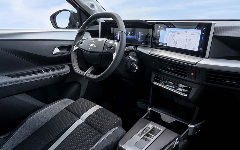 Η σύγχρονη αισθητική συνεχίζεται και στο εσωτερικό, όπου η μοντέρνα σχεδίαση συναντά την πρακτικότητα. Οι οριζόντιες διακοσμητικές επιφάνειες στο ταμπλό και τις πόρτες ενισχύουν την αίσθηση ευρυχωρίας της καμπίνας. Επιπλέον, το πλήρως ψηφιακό Pure Panel cockpit περιλαμβάνει οθόνη πληροφόρησης οδηγού 10" και, προαιρετικά, οθόνη infotainment ίδιου μεγέθους. Για όσους προτιμούν να χρησιμοποιούν τις δικές τους συσκευές, η βασική έκδοση διαθέτει ένα πρακτικό, καινοτόμο smartphone station αντί για κεντρική οθόνη. Επιπλέον, σύμφωνα με την προσέγγιση «Greenovation» της Opel, τα εργονομικά καθίσματα με τη λειτουργία Intelli-Seat προέρχονται από ανακυκλωμένα, βιώσιμα υλικά.