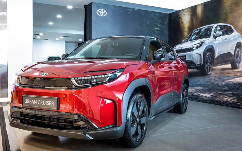 Το τρίτο μοντέλο ήταν το νέο Urban Cruiser Electric, το οποίο διαθέτει μια σύγχρονη «Urban Tech» αισθητική που αποπνέει αυθεντική ποιότητα SUV. Στο εμπρός μέρος, δύο στοιχεία που μοιράζεται η νέα γενιά μοντέλων της Toyota είναι η χαρακτηριστική σχεδίαση «hammerhead» και τα λεπτά φωτιστικά σώματα. Στο πίσω μέρος, τα μυώδη φτερά και η φωτιζόμενη μπάρα που αγκαλιάζει το αμάξωμα τονίζουν τη δύναμη και τη σταθερότητα. Το Urban Cruiser βασίζεται σε μια ισχυρή πλην όμως ελαφριά πλατφόρμα, η οποία προορίζεται αποκλειστικά για αμιγώς ηλεκτρικά οχήματα. Ο σχεδιασμός της εξαλείφει την ανάγκη για εγκάρσιες δοκούς στο δάπεδο, προσφέροντας έτσι περισσότερο χώρο για τη μπαταρία, χωρίς χωροταξικούς συμβιβασμούς.