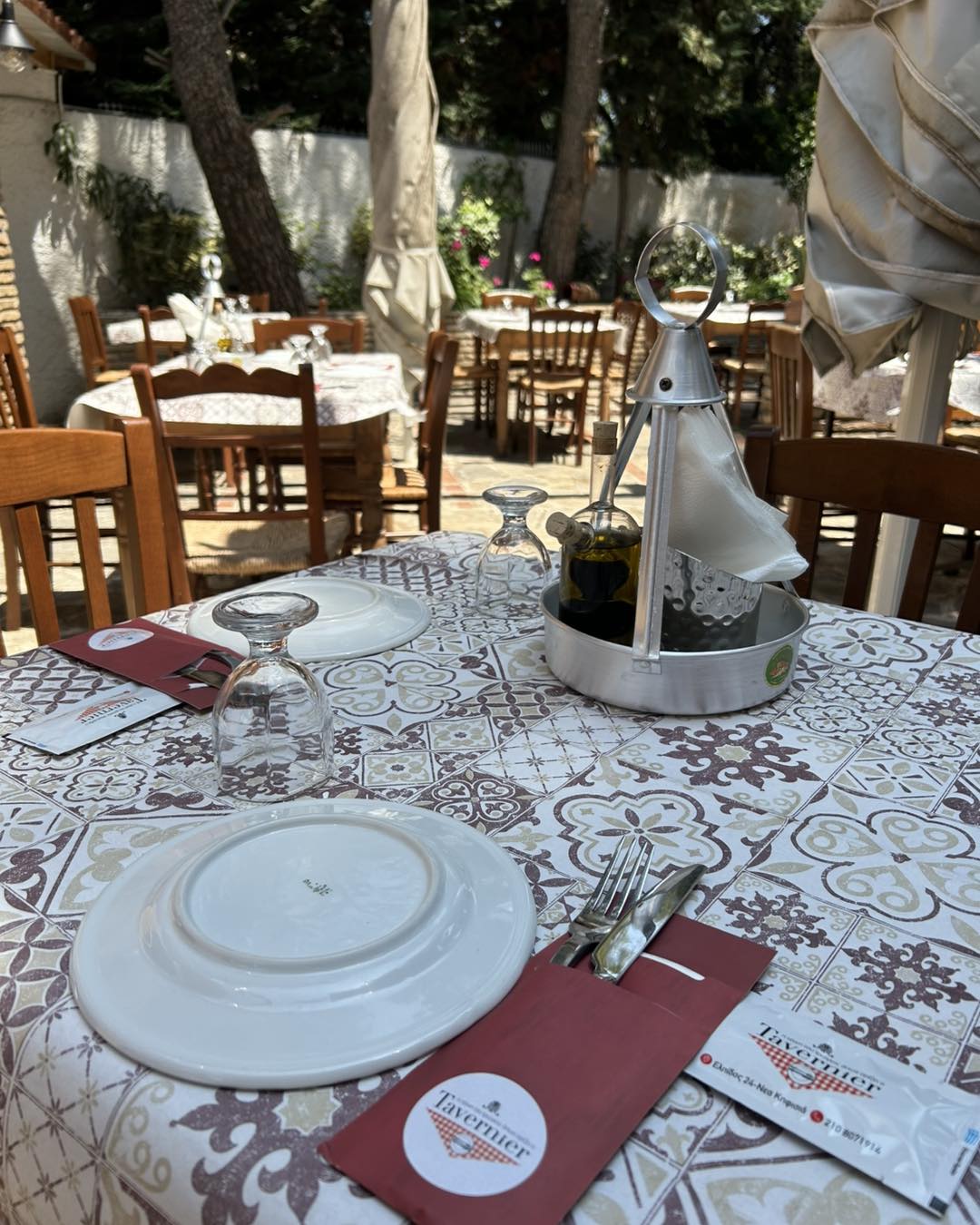 Μην σε ξεγελάσει το γαλλικό της όνομα – αυτή η παραδοσιακή ταβέρνα, χωμένη σε ένα ημιυπόγειο μονοκατοικίας, σε βάζει αμέσως στο κλίμα μιας αυθεντικής, κυριακάτικης εμπειρίας στο χωριό. Το φαγητό είναι σπιτικό, μαμαδίσιο και σερβίρεται στην όμορφη, φροντισμένη αυλή, που γεμίζει αρώματα και κουβέντες. Το μενού είναι μικρό αλλά καλοδουλεμένο, με πιάτα που αλλάζουν ανάλογα με τα υλικά της εποχής και τη διάθεση της κουζίνας. Θα βρεις μοσχαρίσια μάγουλα με χυλοπιτάκι, λαχταριστό μοσχαρίσιο συκώτι, γαρδουμπάκι καλομαγειρεμένο, τυροπιτάρι με άγρια χόρτα και μυρωδικά, αλλά και πιο παραδοσιακά όπως ντολμαδάκια γιαλαντζί και μελιτζάνες στον ξυλόφουρνο. Από τις πιο δυνατές επιλογές, το χοιρινό κότσι, οι μπάμιες και το αρνάκι φούρνου κλέβουν την παράσταση. Για ένα πλήρες γεύμα, με το κρασάκι σου, δύσκολα θα ξεπεράσεις τα 20€ το άτομο.
