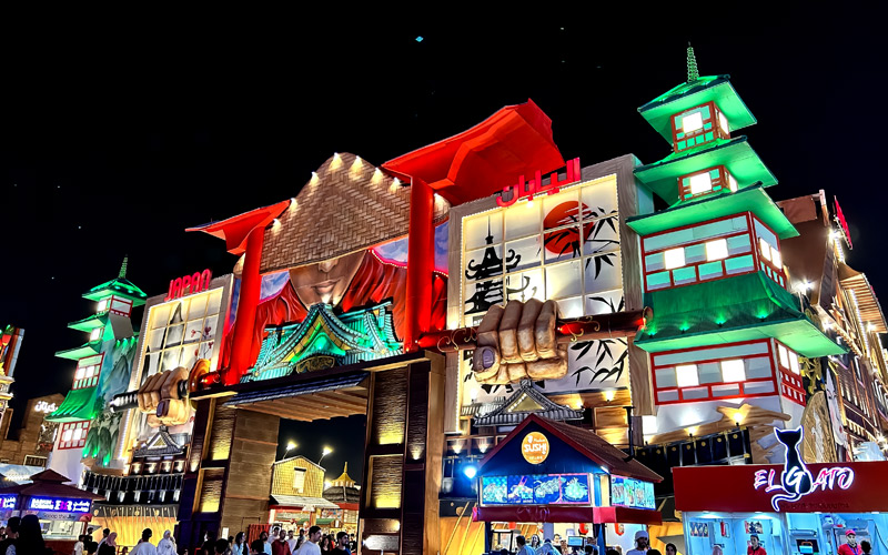 Ένας ιδιαίτερος προορισμός για αγορές είναι και το Global Village, ένα θεματικό πάρκο με περίπτερα από χώρες όλου του κόσμου, όπου μπορείς να βρεις αυθεντικά και ιδιαίτερα τοπικά προϊόντα όπως χουρμάδες, λευκό μέλι από την Υεμένη, ανατολίτικα και ινδικά μπαχαρικά, βαμβακερά υφάσματα από την Αίγυπτο, αλλά και καφέδες και τυριά από τον Λίβανο και τη Συρία, όπως labneh και shanklish, καθώς και αραβικό καφέ με σαφράν και κάρδαμο.