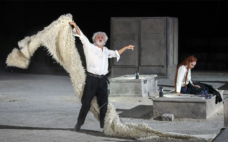 Μια μεγαλειώδης παραγωγή, με σπάνια υποβλητική ατμόσφαιρα και μαγική αισθητική, επιστέγασμα της μοναδικής θεατρικής πορείας του δημιουργού της εδώ και μισό αιώνα. Μία συμπαραγωγή του Φεστιβάλ Αθηνών Επιδαύρου και του Πολιτιστικού Οργανισμού 'Λυκόφως' του Γιώργου Λυκιαρδόπουλου με την υποστήριξη του Ιδρύματος Σταύρος Νιάρχος (ΙΣΝ).