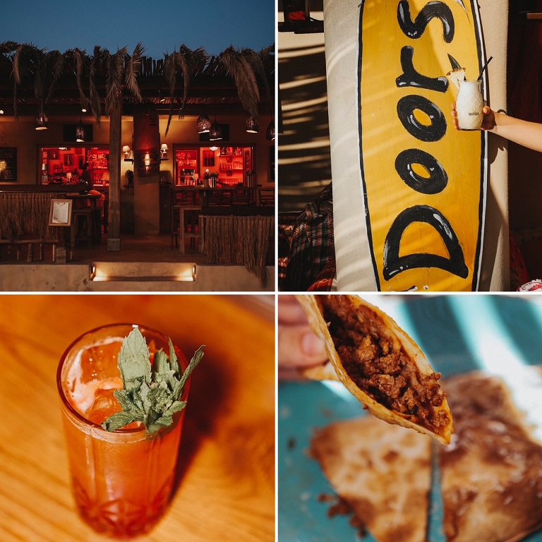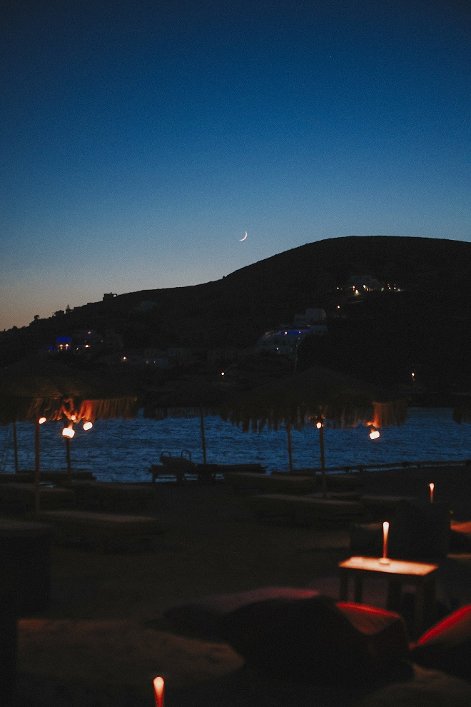 Στην άμμο σε περιμένουν τραπεζάκια για δείπνο με θέα, ενώ στο bar κυριαρχούν οι γεύσεις του ελληνικού aperitivo: Mastiha Basil Smash, Anice Sour, Mai Tai Doors, Zombie Doors, Limoncello Spritz και η all time classic Pina Colada με Batida de Coco.