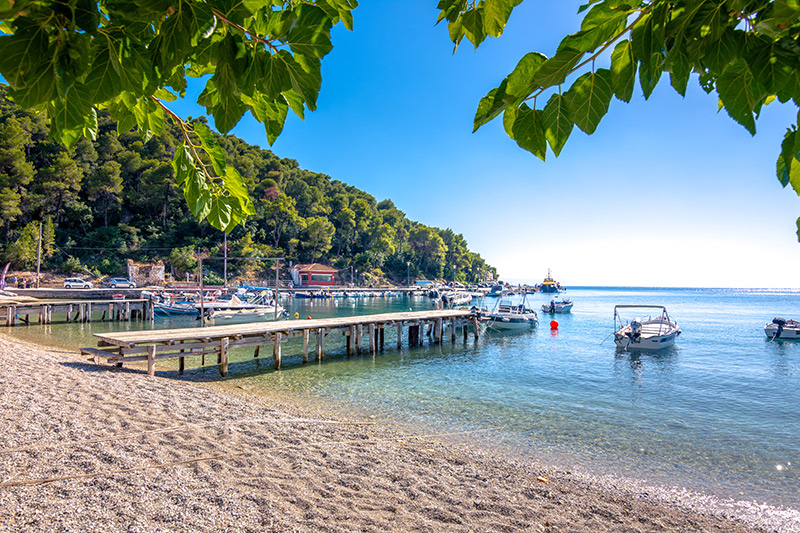 Φουντωτά πευκοδάση που φτάνουν ως το κύμα, σμαραγδένια νερά που τα καθρεφτίζουν και κυκλαδίτικες πινελιές σε μια ακόμη σποράδα χάρμα οφθαλμών. Η Σκόπελος είναι ο ορισμός της πράσινης απόδρασης, με τις παραλίες της να περιβάλλονται από καταπράσινα δάση που συχνά φτάνουν ως την άκρη του νερού. Στον Πάνορμο, τα πεύκα αγκαλιάζουν τη βοτσαλωτή ακτή, προσφέροντας ανακούφιση από τον ήλιο σε όσους αποφεύγουν τις οργανωμένες ξαπλώστρες. Στη Μηλιά, η βλάστηση πυκνώνει όσο προχωράς προς τα πλαϊνά της ακτής, δημιουργώντας σημεία ιδανικά για χαλάρωση κάτω από τα δέντρα. Ο Στάφυλος και το Βελανιό, πιο απομονωμένες επιλογές, εντυπωσιάζουν με τα γαλαζοπράσινα νερά και το φυσικό τους περιβάλλον, που συνδυάζει τη δροσιά του δάσους με τη γαλήνη της θάλασσας.