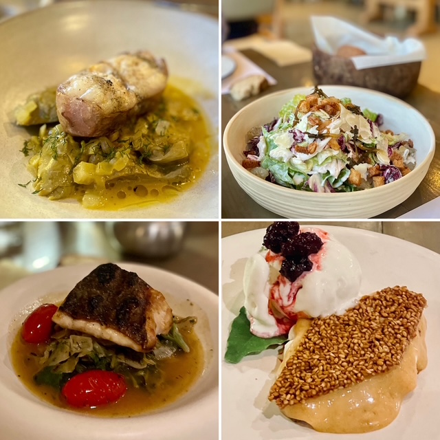 Έξοχα ήταν όσα δοκιμάσαμε στο Μικρό Καράβι, η μπουκιά και συχώριο ταρτάκι-καλωσόρισμα με το χέλι, το πεντανόστιμο και καθόλου βαρύ ιμάμ, η σαλάτα με τη μοσχομυριστή ντομάτα και το νιώτικο ξινοτύρι, η φινετσάτη αθηναϊκή με την αέρινη σπιτική μαγιονέζα. Θα σταθώ λίγο περισσότερο στο επιδόρπιο-έκπληξη, την κρέμα από το ντόπιο τυρί πέτρωμα με αρωματικό ζελέ πορτοκαλιού και μαστίχας και το τραγανό φύλλο με το οποίο κεντάνε στην Τήνο τα λυχναράκια (ή τσιμπητά τυροπιτάκια). Ο Αντώνης, μετά από πολλές προσπάθειες και πειράματα, κατάφερε σε αυτό το επιδόρπιο να μεταφέρει πιστή την εύθραυστη υπόσταση και το φίνο άρωμα του εμβληματικού τηνιακού κεράσματος.