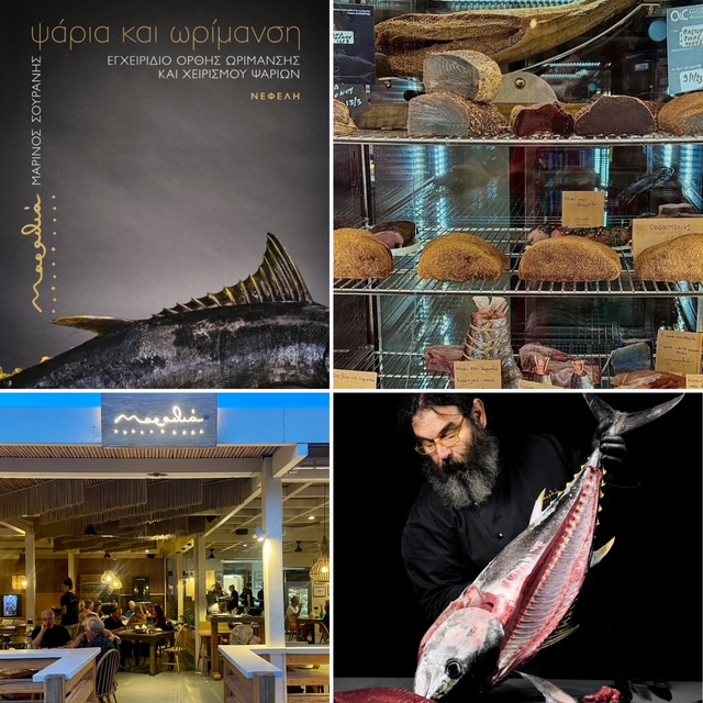 Πάτερ φαμίλιας της Μαραθιάς είναι ο Μαρίνος Σουράνης που κι εκείνος, μια ιστορία είναι από μόνος του. Μια ιστορία που ξεκινά στη θάλασσα και στη θάλασσα τελειώνει. Μια ιστορία που αρχίζει στην Τήνο και στην Τήνο τελειώνει. Πριν να πάω στη Μαραθιά, σε αυτό το εστιατόριο-κόσμημα, νόμιζα πως τα ήξερα όλα για τη φιλοσοφία και τις πρακτικές της κουζίνας, για τον Μαρίνο τον ίδιο που τον είχα άλλωστε συναντήσει και μιλήσει για λίγο μαζί του στην παρουσίαση του εκπληκτικού του βιβλίου για τα ψάρια, την τέχνη της ωρίμανσής τους όπως την ασκεί στο εστιατόριο, για το νησί και τους ανθρώπους του. Ένα βιβλίο που δεν απευθύνεται μόνο στους επαγγελματίες, όπως αρχικά νόμιζα, αλλά σε όλους, λιγότερο ή περισσότερο γνώστες της θαλασσινής γαστρονομίας, αφού μέσα από αυτό μαθαίνεις όσα οφείλεις να γνωρίζεις για τα ψάρια της ελληνικής θάλασσας και τις ηθικές πρακτικές αλιείας και διαχείρισης που τους χρωστάμε. Κι αφού τα γνωρίσεις όπως τα έμαθε ο Μαρίνος από τους ψαράδες, τότε μπορείς να αρχίσεις την έρευνα για την εξέλιξη της ψαροφαγίας. Έρευνα που καταλήγει σε γεύσεις βαθιές και ουσιαστικές.