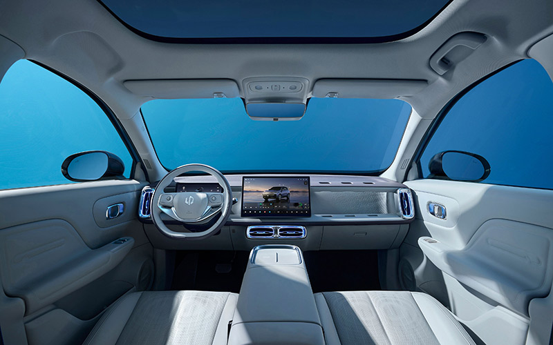 Ο εσωτερικός σχεδιασμός αναδεικνύει έναν μοντέρνο χαρακτήρα, προσφέροντας παράλληλα μια φωτεινή και ευρύχωρη ατμόσφαιρα. Μια μοντέρνα οθόνη αφής 14,6 ιντσών, δεσπόζει στο κέντρο του ταμπλό, δημιουργώντας ένα high-tech κεντρικό σημείο. Η διάταξη της καμπίνας είναι λειτουργική και φιλόξενη, με ευέλικτες διαμορφώσεις καθισμάτων που επιτρέπουν στον χώρο να μετατραπεί σε έναν άνετο χώρο ανάπαυσης.