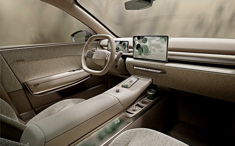 Το εσωτερικό αποπνέει lounge ατμόσφαιρα, με ποιοτικά υλικά, φυσικές υφές και ειδικές «Ατμόσφαιρες» φωτισμού, ήχου και κλιματισμού. Ιδιαίτερη λεπτομέρεια αποτελούν τα καθίσματα που αναδιπλώνονται πλήρως, δημιουργώντας μια άνετη επιφάνεια ανάπαυσης, εμπνευσμένη από το θρυλικό VW Bus.