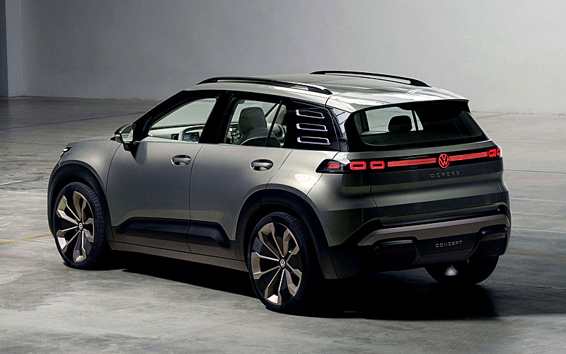 Το ID. Cross Concept ξεχωρίζει με το χρώμα Urban Jungle Green και τη νέα σχεδιαστική φιλοσοφία Pure Positive, η οποία στηρίζεται σε τρεις αρχές: σταθερότητα, συμπάθεια και «μυστική συνταγή».