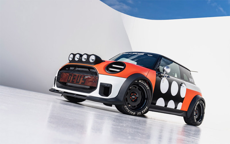 Τα δύο πρωτότυπα οχήματα βασίζονται σε προτάσεις της MINI John Cooper Works: το πρώτο, ένα MINI JCW Electric με ισχύ έως 258 ίππους και το δεύτερο, ένα MINIJCW με κινητήρα εσωτερικής καύσης που αποδίδει 231 ίππους. Η οροφή κάθε οχήματος κοσμείται από ένα μεγάλο λευκό «Χ», στοιχείο που συμβολίζει τη συνεργασία και τη δημιουργική σύμπραξη μεταξύ δύο εμβληματικών εμπορικών σημάτων, MINI JCW x DEUS.