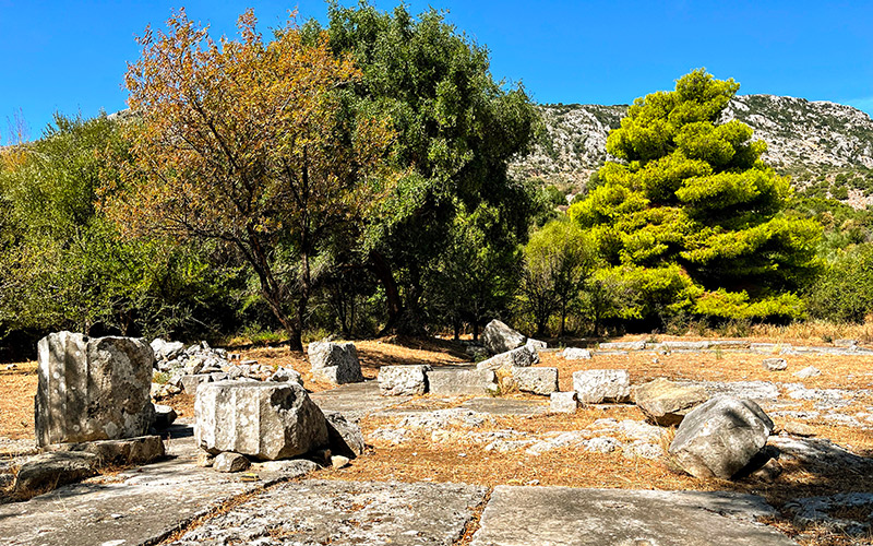 Ψηλά πάνω από το λιμανάκι του Αστακού, σε ένα ύψωμα με πανοραμική θέα στις γύρω βουνοπλαγιές, σώζονται τα θεμέλια και κάποια κομμάτια από τον άλλοτε εντυπωσιακό στο γιγάντιο μέγεθός του ναό του Διός Καραού (του 4ου αιώνα π.Χ.). Ο απολαυστικά σκιερός αρχαιολογικός χώρος, πνιγμένος στις ελιές που ήταν ως γνωστόν δέντρο ιερό τω καιρώ εκείνον, είναι επισκέψιμος κατόπιν συνεννόησης με την Εφορεία Αρχαιοτήτων Αιτωλοακαρνανίας και Λευκάδας ή τον Δήμο Ξηρομέρου (που είναι ο δήμος του Αστακού, μην σε μπερδεύει το όνομα).