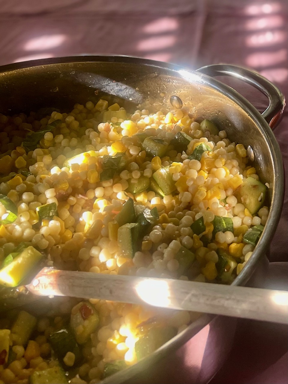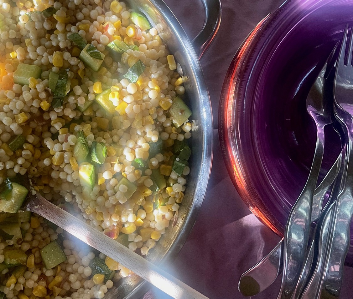 Η Αγάπη μαγείρεψε και μας δείχνει ένα νόστιμο φαγητό της εποχής με κουσκουσάκι, καλαμπόκι και κολοκυθάκια.