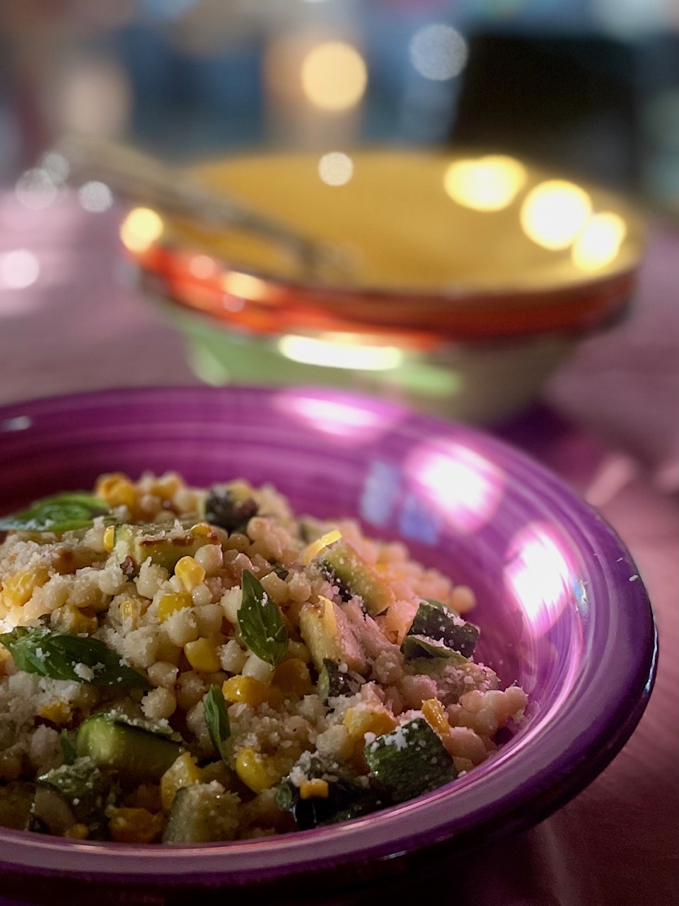 Κουσκουσάκι, καλαμπόκι και κολοκυθάκια σε ένα φαγητό ντεμί σεζόν