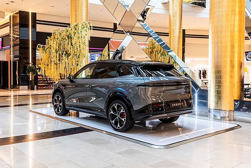 Οι επισκέπτες του Golden Hall, μέσω ενός ειδικά διαμορφωμένου pop-up εκθεσιακού χώρου, έχουν την ευκαιρία να δουν από κοντά το ολοκαίνουργιο Zeekr 7X.