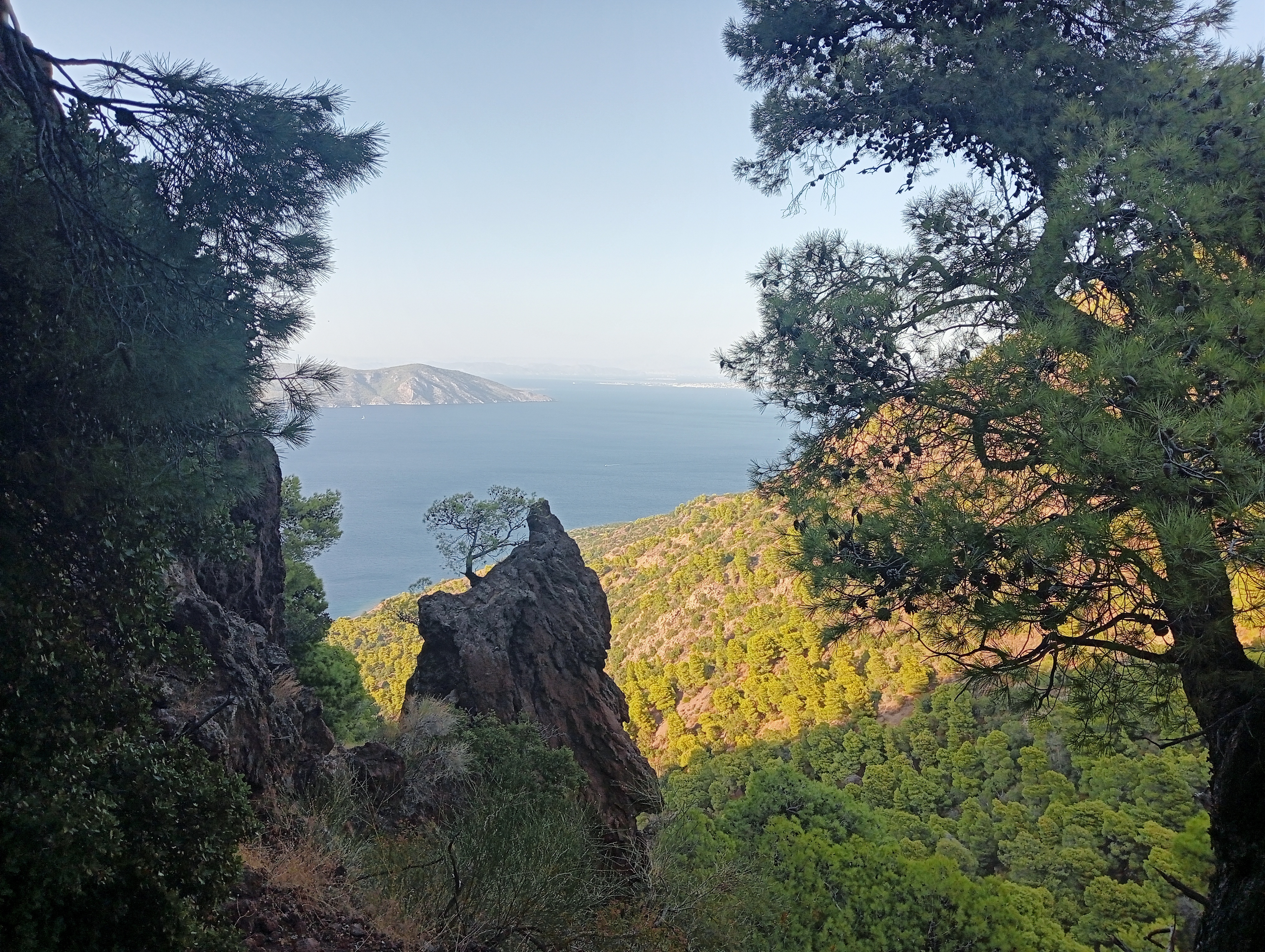 Για να φτάσεις εκεί χρειάζεσαι να πας με το αυτοκίνητο μέχρι την Καμμένη Χώρα και να την προσπεράσεις (προσοχή γιατί και μέσα στο χωριό ξεκινάει διαδρομή που είναι μεγαλύτερη και βγάζει αλλού). Με μόνο λίγα σημεία που θα σε κάνουν να ιδρώσεις σοβαρά και ένα υπέροχο μικρό σπήλαιο δωράκι στο τέλος (τέλειο σημείο για άραγμα να μαζέψεις δυνάμεις), θα δεις ένα τεράστιο κομμάτι της καταπράσινης πλαγιάς να ξεπροβάλει πίσω από τις ηφαιστειογενεις πέτρες, όπως και ολόκληρα Αγκίστρι-Αίγινα να σε χαιρετούν, πιο κοντά απ’ όσο νομίζεις.