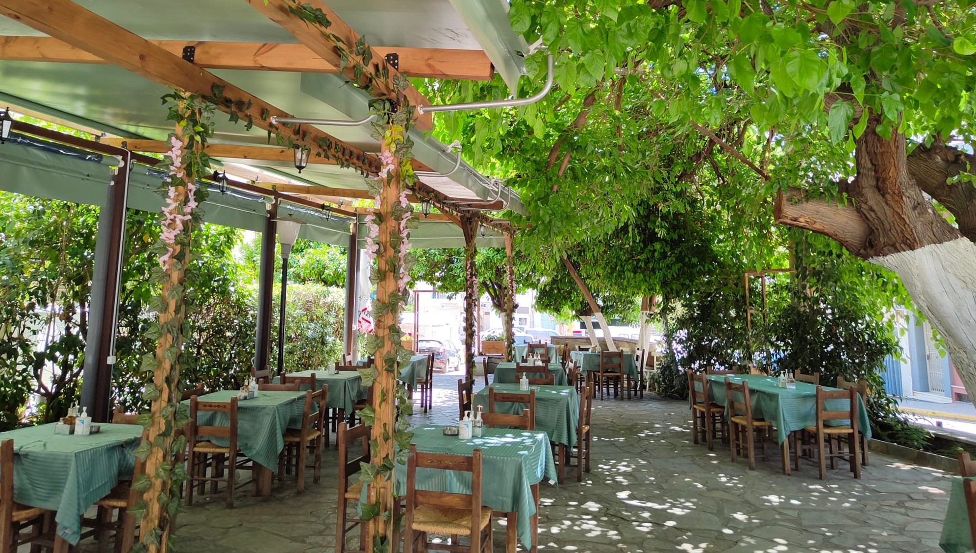 Πρώτα απ’ όλα, θα πιάσεις τραπεζάκι στη Μουριά, για να δοκιμάσεις, στον ίσκιο της πελώριας μουριάς της, πεντανόστιμα μαγειρευτά σαν την κοκκινιστή γίδα που θα σου κλέψει την καρδιά, αλλά και εκλεκτά κρέατα στη σχάρα, όπως η προβατίνα και τα μπριζολάκια μαύρου χοίρου. Μην χάσεις και την χειροποίητη μελιτζανοσαλάτα, και το γεμιστό λουκάνικο, που είναι ο τέλειος τσιπουρομεζές –τα τσιπουράκια, όπως μαντεύεις, ρέουν άφθονα, ο δε λογαριασμός στο τέλος βγαίνει γύρω στα 20€ το άτομο.