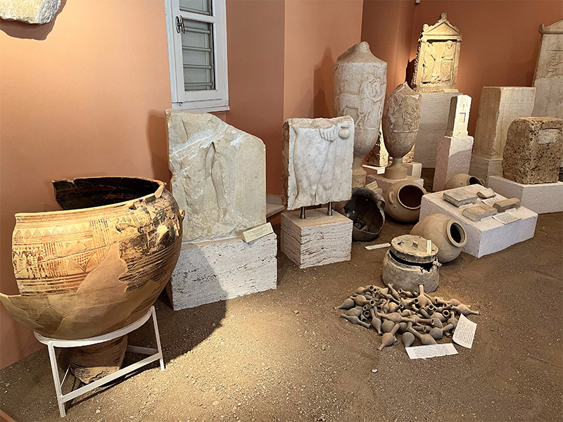 Στους πρόποδες του λόφου της Καρύας, ακριβώς κάτω από τα αρχαία ιερά της Δήμητρας που ονομάζονταν μέγαρα και βάφτισαν την πόλη, το Αρχαιολογικό Μουσείο Μεγάρων διηγείται μια ιστορία που ξεκινά από τον 8ο αιώνα π.Χ. (τριακόσια χρόνια πριν την Αθήνα του Περικλή σα να λέμε) μέσα από εκθέματα που θα σε εκπλήξουν. Γιατί σίγουρα, αγάλματα και αγγεία έχεις ξαναδεί, αλλά αρχαίο… ντέφι, που λεγόταν σείστρο, δεν έχεις. Ούτε δίαυλους, αρχαίους αυλούς που κατασκευάζονταν διαφορετικά αναλόγως αν θα τους έπαιζε άνδρας ή γυναίκα. Ούτε –και γι’ αυτό είμαστε βέβαιοι– χαρώνειο οβολό, το νόμισμα ακριβώς όπως βρέθηκε στο στόμα ενός νεκρού που θα το έδινε στον Χάρο για να τον περάσει απέναντι τον 4ο π.Χ. αιώνα. Θα συνεχίζαμε, αλλά φτάνουν τα σπόιλερ, τα υπόλοιπα θα τα δεις στο μουσείο με τα μάτια σου.